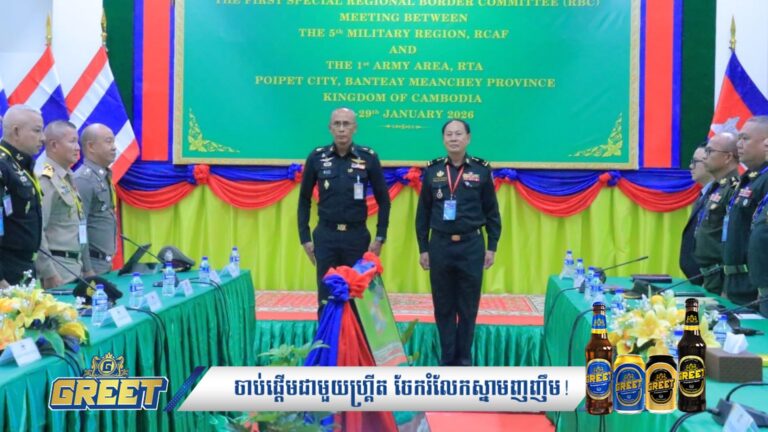 នៅរសៀលថ្ងៃទី២៧ ខែមករា ឆ្នាំ២០២៦នេះ កិច្ចប្រជុំក្រុមលេខាធិការដ្ឋាននៃគណៈកម្មាធិការព្រំដែនថ្នាក់យោធភូមិភាគកម្ពុជា-ថៃ (RBC) យោធភូមិភាគទី៥ ភាគីកម្ពុជា និងកងទ័ពភូមិភាគទី១ ភាគីថៃ បានចាប់ផ្តើមកិច្ចប្រជុំរបស់ខ្លួនហើយ នាវេលាម៉ោង ១៤:០០នាទី នៅច្រកអន្តរជាតិប៉ោយប៉ែត ខេត្តបន្ទាយមានជ័យ ទល់នឹងខេត្តស្រះកែវ ប្រទេសថៃ។ បើតាមអ្នកនាំពាក្យក្រសួងការពារជាតិ គណៈប្រតិភូក្រុមលេខាធិការរបស់កម្ពុជា ដឹកនាំដោយ ឧត្តមសេនីយ៍ទោ សរ គឹមប៉ាក់ ប្រធានក្រុមលេខាធិការ (RBC) កម្ពុជា […]