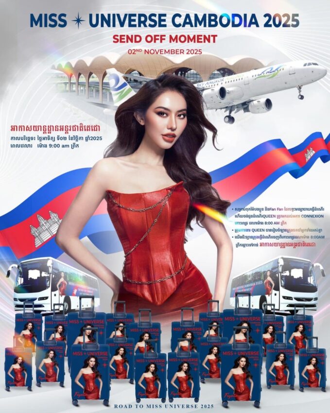 មិនខ្វល់អ្វីទាំងអស់ ! ហ្វីយ៉ាតា សុំលេងអស់ដៃ ឱ្យកក្រើកឆាកបវរកញ្ញាម្តងហើយពេលនេះ ដោយបានត្រៀមរថយន្តក្រុង៤គ្រឿងសម្រាប់ដឹកអ្នកគាំទ្រទៅព្រលានយន្តហោះអន្តរជាតិតេជោដោយផ្ទាល់ និងត្រៀម ៣០វ៉ាលី សម្រាប់ការប្រកួត Miss Universe លើកទី៧៤ ។