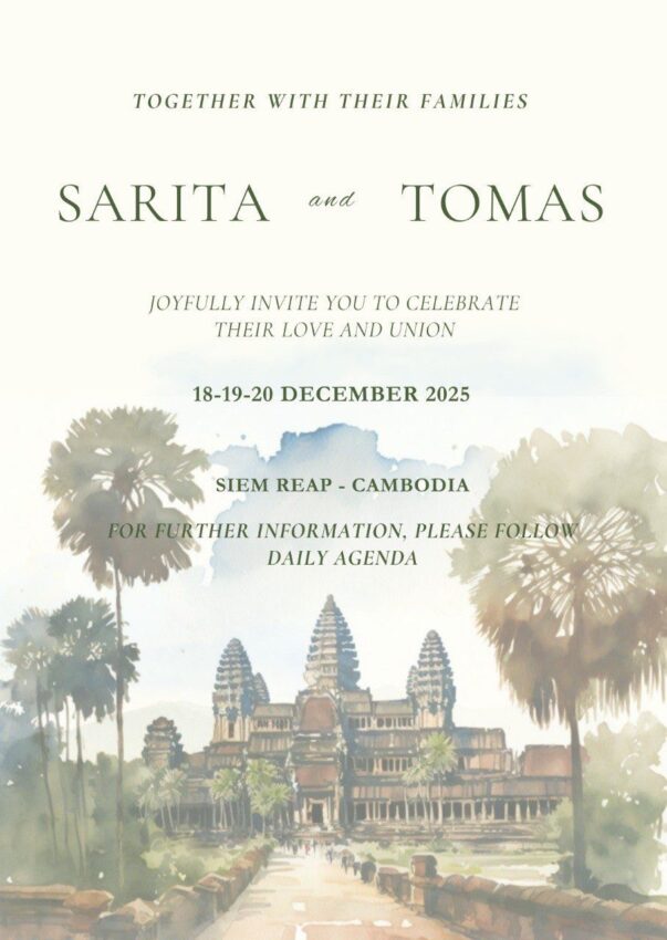 កៀកថ្ងៃចូលរោងការ ពិធីការិនី រ៉េត សារីតា ប្រកាសរៀបចំពិធីមង្គលការរបស់ខ្លួនរហូតដល់ទៅ៣ថ្ងៃនៅលើទឹកដី សៀមរាប ដើម្បីចូលរួមនិងជួយផ្សព្វផ្សាយទេចរណ៍ សិល្បៈ ប្រពៃណី ខ្មែរ និង អឺរ៉ុប ។
