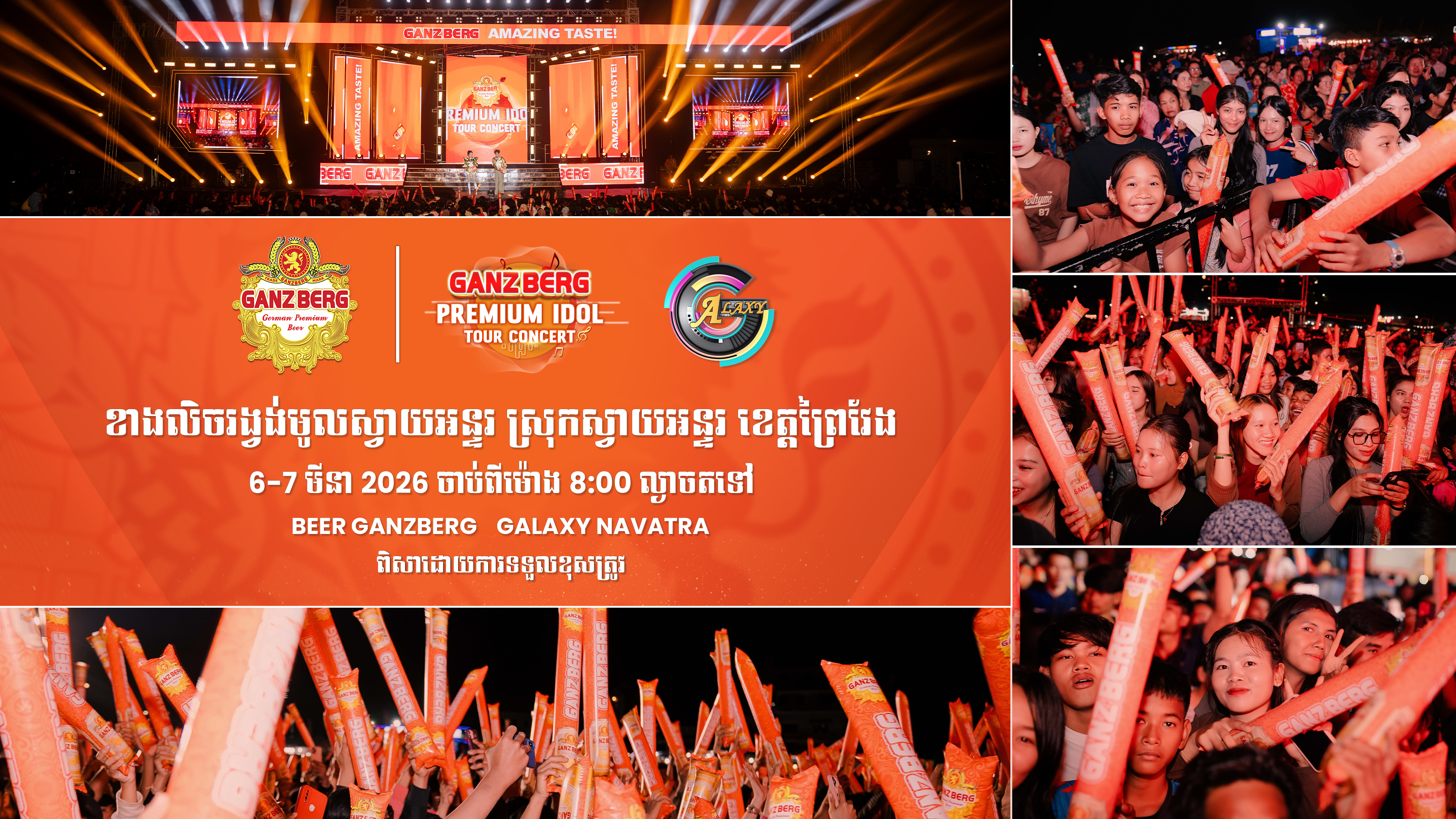 បរិយាកាសថ្មីដែលព្រឹត្តិការណ៍ប្រគំតន្រ្តី GANZBERG PREMIUM IDOL TOUR CONCERT ត្រៀមនឹងបង្ហាញទស្សនិកជននៅចុងសប្តាហ៍នេះ គឺជួបជាមួយកំពូលតារាចម្រៀងក្នុងដួងចិត្តហើយ ថែមទាំងបានរាំលេងកម្សាន្ត ជាមួយបទចម្រៀងថ្មីៗ និងបានថតរូបជុំគ្នាបែបសប្បាយៗ រសាយអស់ទុក្ខកង្វល់ ដោយគ្រាន់តែចូលរួមទស្សនាការប្រគំតន្រ្តី GANZBERG PREMIUM IDOL TOUR CONCERT ឱ្យបានច្រើនកុះករ បើមិនបានមកចូលរួមទេ ប្រយ័ត្នស្តាយក្រោយណា ។