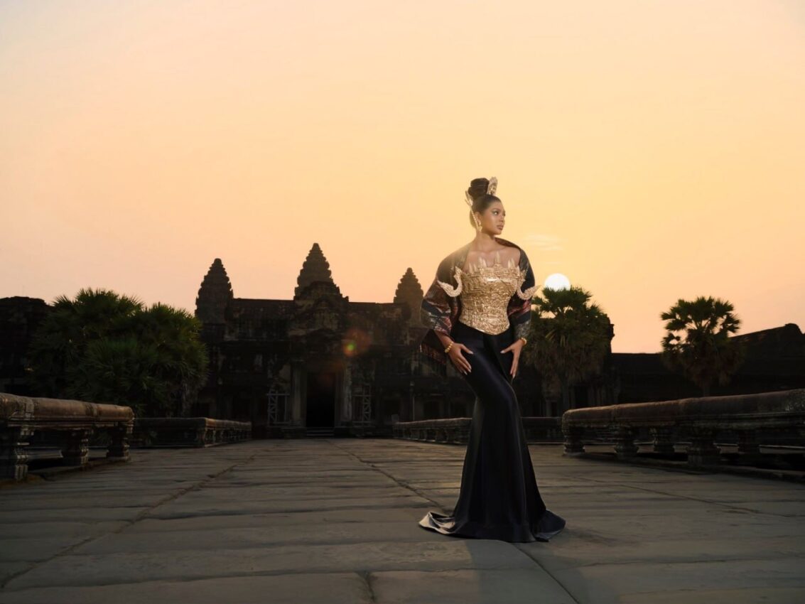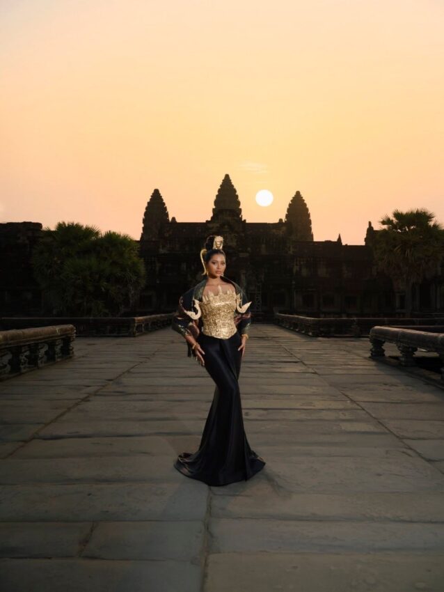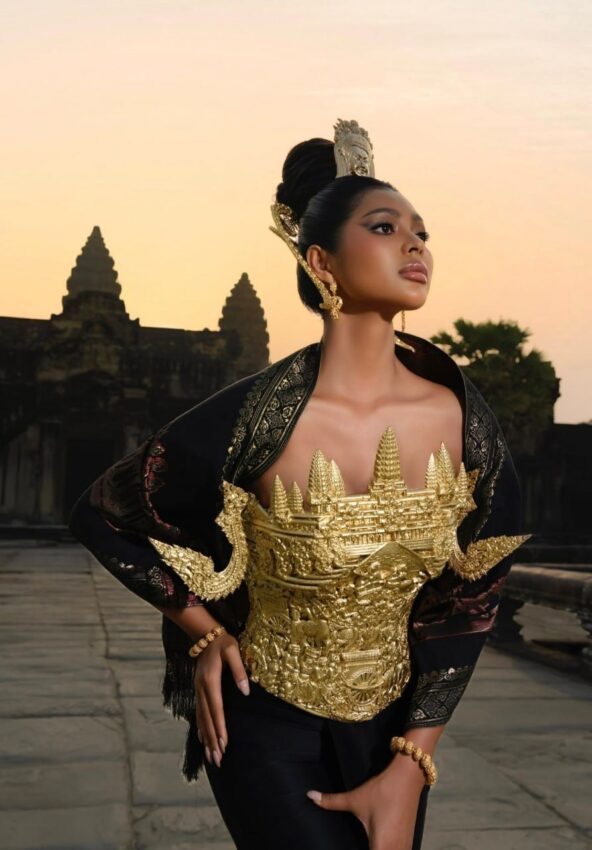 ឈរថតមុខប្រាសាទអង្គរវត្តនិងមើលថ្ងៃរះ កញ្ញា កុយ អេណា បានបង្អួតសម្រស់យ៉ាងស្រស់ស្អាតក្នុងនាមជាស្រ្តីខ្មែរ មិនតែប៉ុណ្ណោះនាងថែមទាំងបានបង្ហាញពីភាពខ្លាំងរបស់ស្រ្តី ខ្មែរ ក្នុងយុគសម័យថ្មីនេះផងដែរ ។