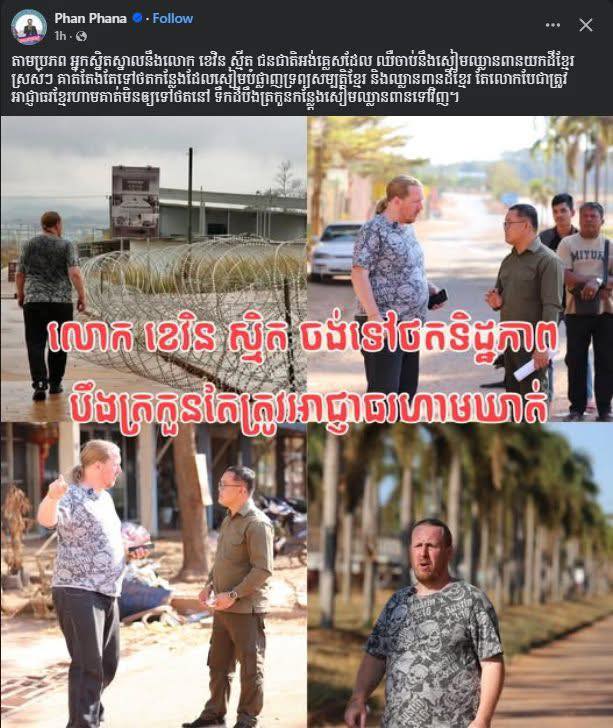ឯកឧត្តម ម៉េត មាសភក្តី បានរៀបរាប់ថា ប្រជាពលរដ្ឋទូទាំងប្រទេសកំពុងឈឺចាប់ចំពោះការឈ្លានពានទឹកដី ហើយខិតខំរួបរួមគ្នាជាកម្លាំងសាមគ្គី ដើម្បីតតាំងជាមួយខ្មាំងសត្រូវ តែបែរជា Phan Phana ជាសកម្មជនក្រុមប្រឆាំង មិនចេះឈឺចាប់ មិនចូលរួមក្នុងនាមជាជាតិសាសន៍ខ្មែរដូចគ្នា បែរជាទៅបង្កើត និងបង្ហោះព័ត៌មានក្លែងក្លាយចោទប្រកាន់មកលើអាជ្ញាធរទៅវិញ។