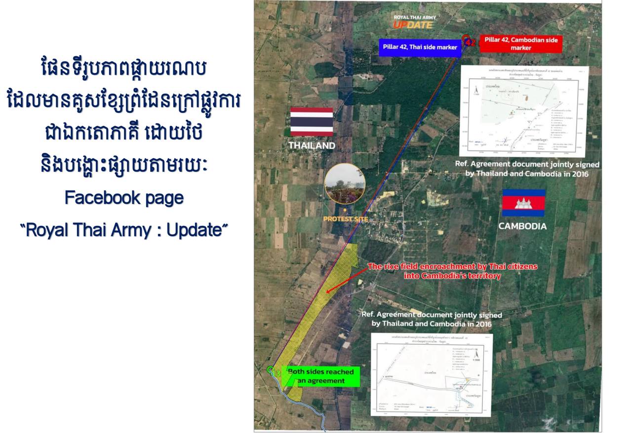ផែនទីឯកតោភាគីរបស់ថៃ បង្ហាញអំពីការកាន់កាប់របស់ថៃចូលក្នុងទឹកដីកម្ពុជានៅភូមិព្រៃចាន់!
