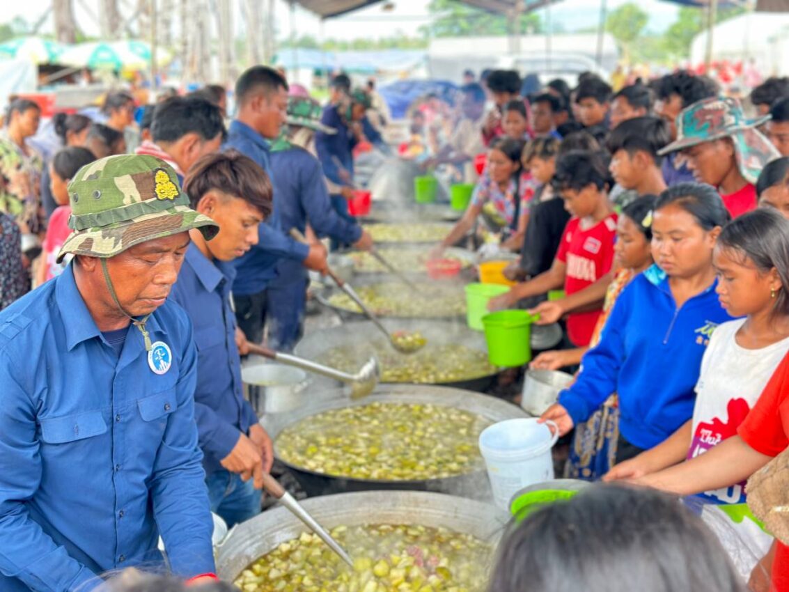 សូមជម្រាបជូនថា ចាប់តាំងពីផ្ទុះអាវុធតាមព្រំដែនកម្ពុជា-ថៃ នៅថ្ងៃទី២៤ ខែកក្កដា អ្នកឧកញ៉ា ឡេង ណាវ៉ាត្រា ក្នុងនាមប្រធានសហព័ន្ធបានដឹកនាំក្រុមយុវជនរៀបចំផ្គត់ផ្គង់ម្ហូបអាហារជូនដល់ប្រជាពលរដ្ឋភៀសសឹកនៅក្នុងខេត្តឧត្តរមានជ័យ និងខេត្តព្រះវិហារ ដែលកាលណោះមានពលរដ្ឋជិត ៧ម៉ឺននាក់បានមកទទួលម្ហូមផ្គត់ផ្គង់ពីក្រុមការងារសហព័ន្ធយុវជនបូជាការពារយុត្តិធម៌ ចំនួន ២ពេលជារៀងរាល់ថ្ងៃ៕