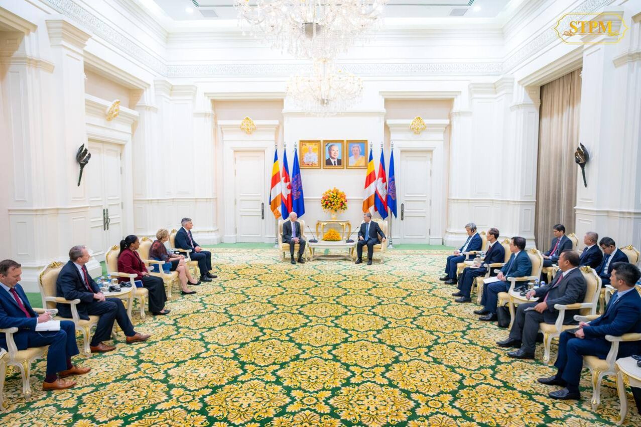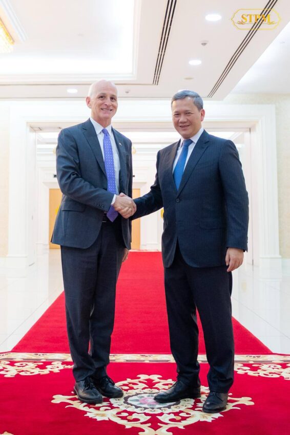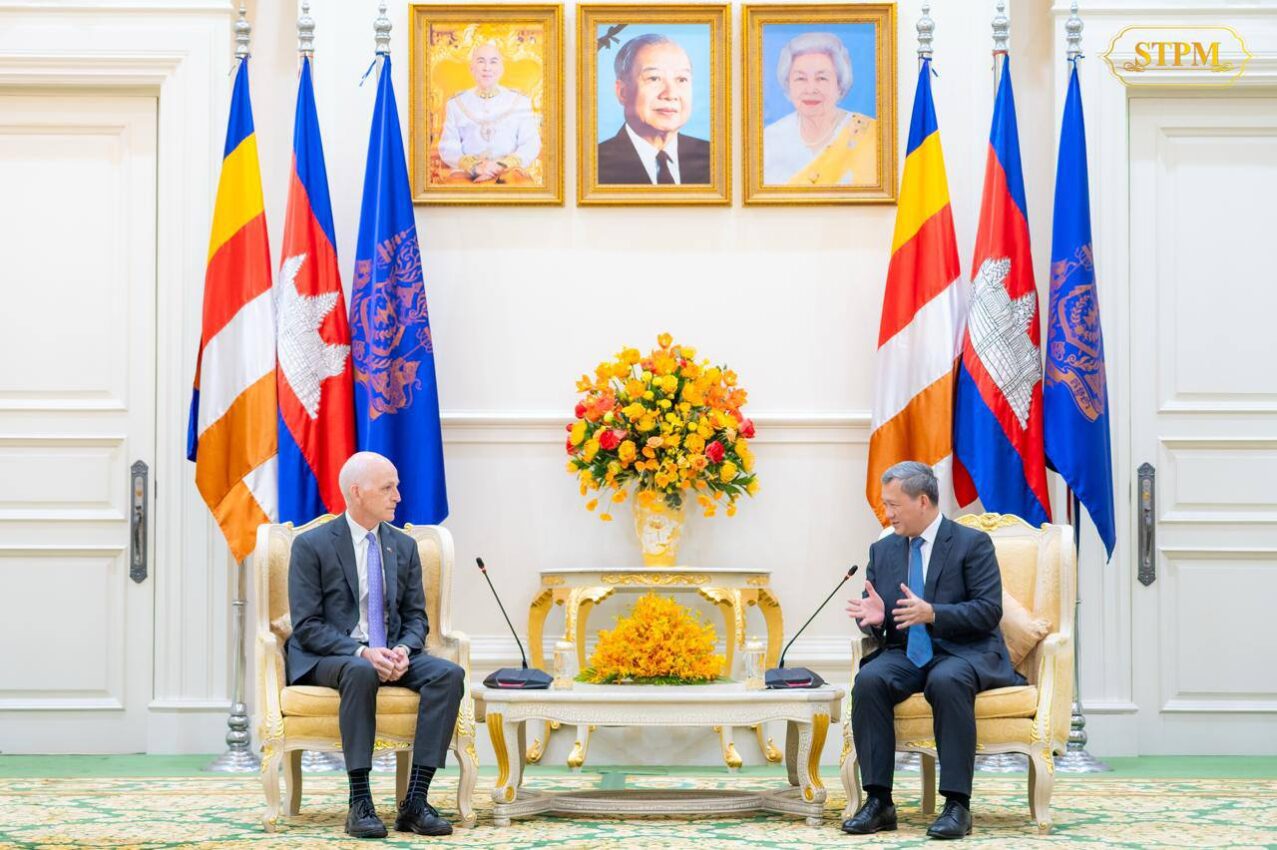 សម្តេចមហាបវរធិបតី ហ៊ុន ម៉ាណែត នាយករដ្ឋមន្ត្រី នៃព្រះរាជាណាចក្រកម្ពុជា បានអនុញ្ញាតឱ្យគណៈប្រតិភូសភាសហរដ្ឋអាមេរិក ដឹកនាំដោយឯកឧត្តម Adam Smith សមាជិកសភាប្រចាំរដ្ឋ Washington រួមដំណើរដោយឯកឧត្តម Michael Baumgartner សមាជិកសភាប្រចាំរដ្ឋ Washington និងលោកជំទាវ Chrissy Houlahan សមាជិកសភាប្រចាំរដ្ឋ Pennsylvania ចូលជួបសម្តែងការគួរសម និងពិភាក្សាការងារ នារសៀល ថ្ងៃទី២៦ ខែកញ្ញា ឆ្នាំ២០២៥ នៅវិមានសន្តិភាព ។