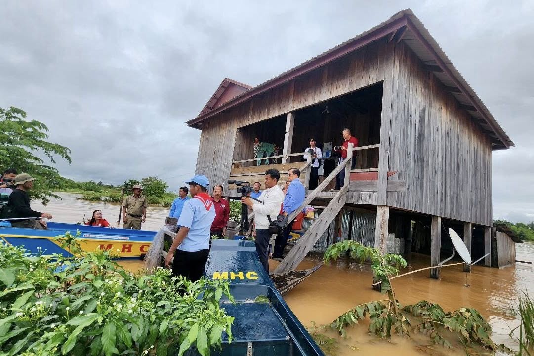 ដោយឡែកមុខព្រួញខេត្តរតនគិរី គណៈប្រតិភូដឹកនាំដោយឯកឧត្តមវេជ្ជបណ្ឌិត សុខ ឡុង នាយកនាយកដ្ឋានសុខភាព កាកបាទក្រហមកម្ពុជា បានចុះសួរសុខទុក្ខ និងចែកអំណោយមនុស្សធម៌ជូនដល់ប្រជាជនរងគ្រោះដោយទឹកជំនន់រហ័ស ចំនួន ៩០០គ្រួសារ ដែលធ្វេីឡេីងនៅទីតាំងចំនួន ២កន្លែងគឺ៖