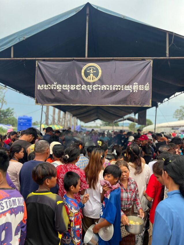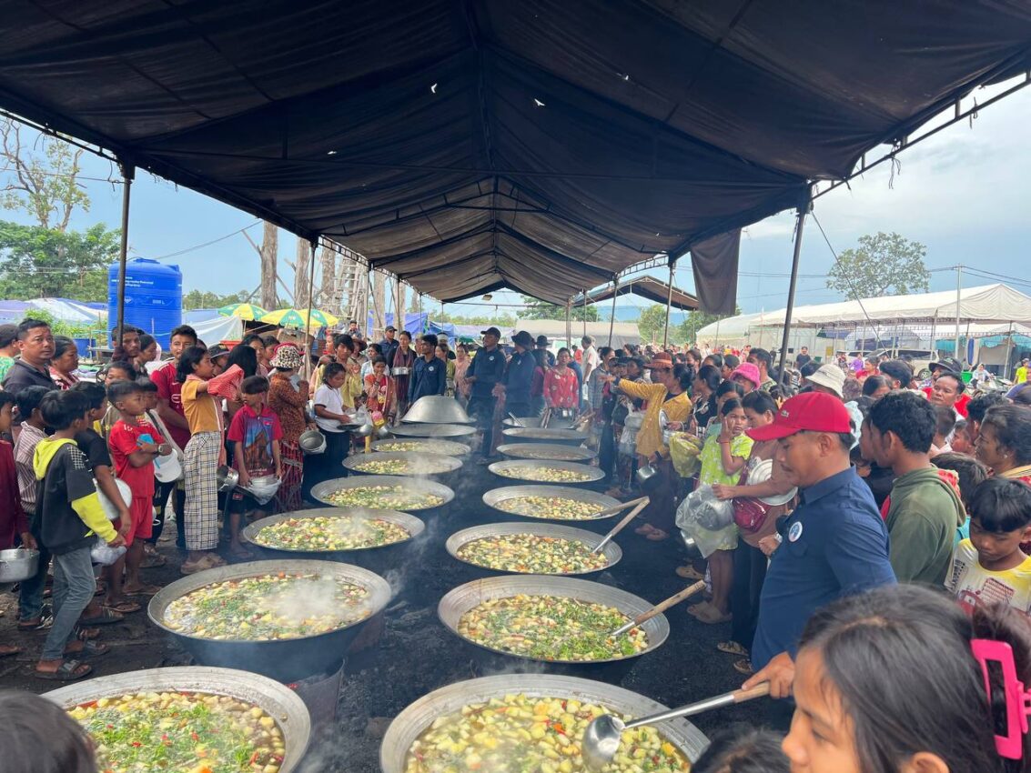 ក្រុមការងារសហព័ន្ធយុវជនបូជាការពារយុត្តិធម៌ ដែលដឹកនាំដោយអ្នកឧកញ៉ា ឡេង ណាវ៉ាត្រា បានបន្តរៀបចំផ្គត់ផ្គង់ម្ហូបអាហារ ២ពេលដល់ជនភៀសសឹកក្នុងខេត្តព្រះវិហារដែលជម្លៀសពីតំបន់ជម្លោះព្រំដែនកម្ពុជា-ថៃ។