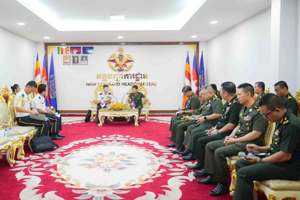 ឯកឧត្តម នាយឧត្តមសេនីយ៍ វង្ស ពិសេន អគ្គមេបញ្ជាការ នៃកងយោធពលខេមរភូមិន្ទ បានអនុញ្ញាតឱ្យលោកឧត្តមសេនីយ៍ទោ SUENAGA MASANORI អគ្គនាយក អគ្គនាយកដ្ឋានកម្មវិធីគោលនយោបាយកងស្វ័យការពារជើងគោកជប៉ុន ចូលជួបសម្តែងការគួរសម និងពិភាក្សាការងារ នៅព្រឹកថ្ងៃទី០៧ ខែតុលា ឆ្នាំ២០២៥ នៅអគ្គបញ្ជាការដ្ឋាន។