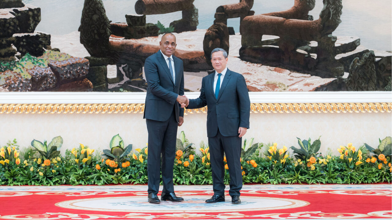 សម្តេចបវរធិបតី ហ៊ុន ម៉ាណែត នាយករដ្ឋមន្ត្រីនៃកម្ពុជា បានជួបពិភាក្សាការងារទ្វេភាគីជាមួយឯកឧត្តម រ៉ូសឺវែល ស្កឺរីត (Roosevelt Skerrit) នាយករដ្ឋមន្ត្រីនៃកុំមិនវែលដូមីនីក និងគណៈប្រតិភូជាន់ខ្ពស់ ក្នុងឱកាសនៃដំណើរទស្សនកិច្ចការងារនៅកម្ពុជា នាព្រឹកថ្ងៃទី៩ ខែតុលា ឆ្នាំ២០២៥ នៅវិមានសន្តិភាព។