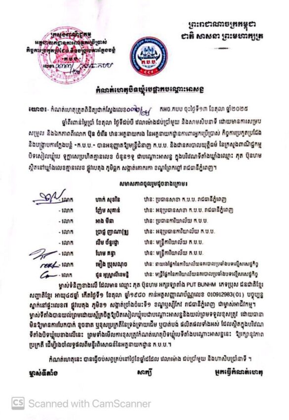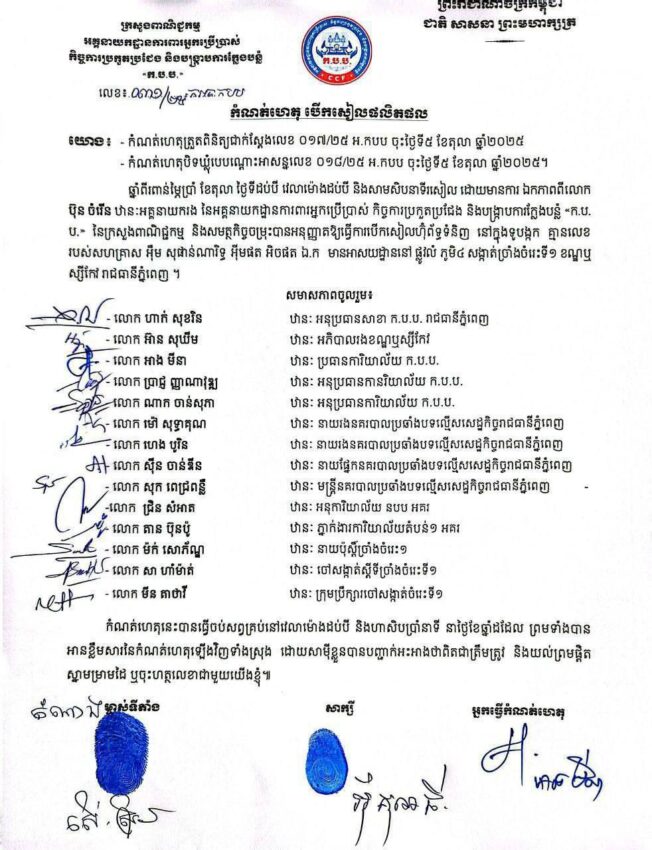 សូមបញ្ជាក់ថា នៅថ្ងៃទី៥ ខែតុលា ឆ្នាំ២០២៥ មន្ត្រីអគ្គនាយកដ្ឋានការពារអ្នកប្រើប្រាស់ កិច្ចការប្រកួតប្រជែង និងបង្ក្រាបការក្លែងបន្លំ (ក.ប.ប) បានចុះពិនិត្យទីតាំងស្តុកសាច់បង្កក ៣កន្លែងដែលជាកម្មសិទ្ធិរបស់អតីតឧកញ៉ា ឈ្មោះ អ៊ឹម សុផាន់ណារិទ្ធ ក្នុងសង្កាត់ច្រាំងចំរេះទី២ ខណ្ឌឬស្សីកែវ រាជធានីភ្នំពេញ។