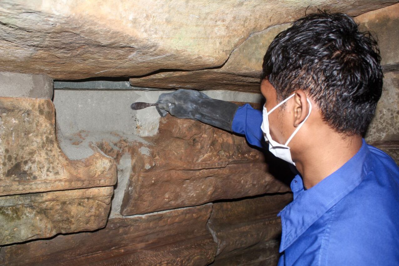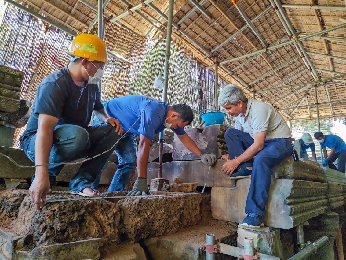 លោក ឡុង ណារី អ្នកជំនាញអភិរក្សថ្ម នៃនាយកដ្ឋានអភិរក្សប្រាសាទនិងបុរាណវិទ្យា បានឱ្យដឹងថា រានហានខាងមុខប្រាសាទបន្ទាយសំរ៉ែ ជ្រុងខាងលិចឆៀងខាងត្បូងនេះ បានរងការខូចខាតធ្ងន់ធ្ងរ ដោយថ្មបាយក្រៀមផ្នែកខាងក្រោមបានពុកផុយខ្លាំង សសរខ្លះពុកផុយ និងក្រៀកខុសពីទីតាំងដើម ធ្វើឱ្យរចនាសម្ពន្ធមិនរឹងមាំ។ ហេតុដូច្នេះ អ្នកជំនាញចាំបាច់ត្រូវពង្រឹងគ្រឹះ និងរចនាសម្ពន្ធឱ្យរឹងមាំឡើងវិញ ដោយកាយយកល្បាយដីស្អុយ និងថ្មដែលខូចខាតចេញ ដើម្បីបន្ថែមថ្មថ្មីខ្លះៗ បន្ទាប់មក គឺបិតបាយអរនៅតាមកម្រាល និងព្យាបាលកន្លែងដែលមានប្រហោងឬស្នាមប្រេះ ដើម្បីការពារកុំឱ្យទឹកជ្រាបចូលបន្តទៀត។