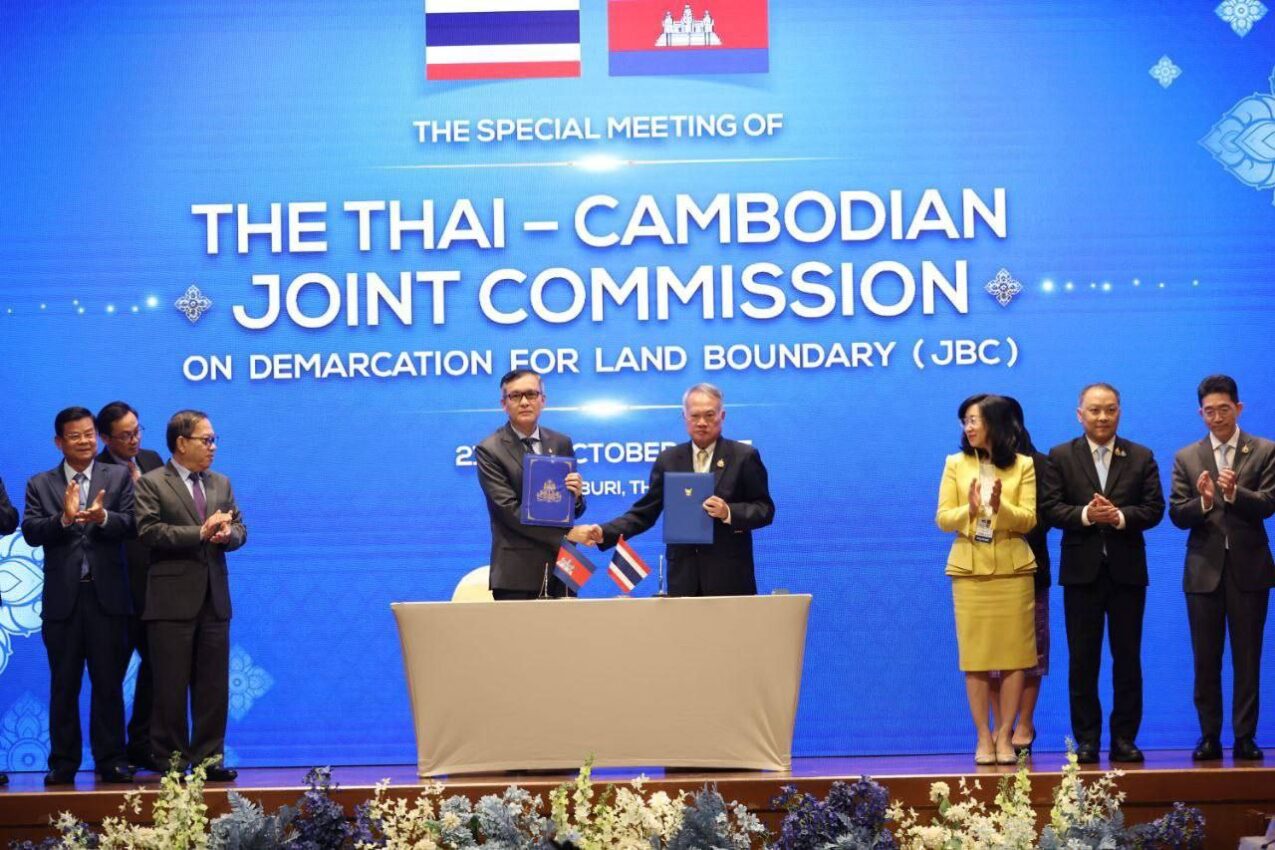 កម្ពុជា-ថៃ សម្រេចបានសេចក្តីថ្លែងការណ៍រួមលើកិច្ចប្រជុំពិសេស JBC ស្តីពីបញ្ហាព្រំដែនប្រទេសទាំងពីរ បន្ទាប់ពីចំណាយពេលប្រជុំពីថ្ងៃទី២១-២២ ខែតុលា ឆ្នាំ២០២៥ នៅខេត្តចន្ទបុរី ប្រទេសថៃ។