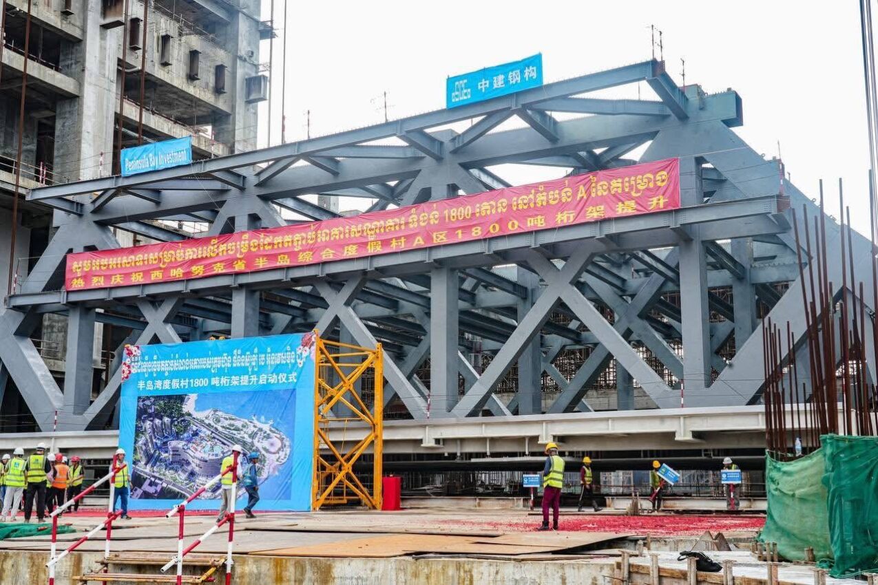 ស្ងាត់ៗ! គម្រោងសណ្ឋាគារលំដាប់ផ្កាយ៥ តម្លៃ ៥៧៤ លានដុល្លារនៅក្រុងព្រះសីហនុ ដំឡើងធ្នឹមសំណង់ទម្ងន់ ១៨០០តោន
