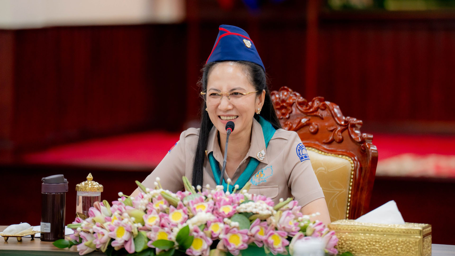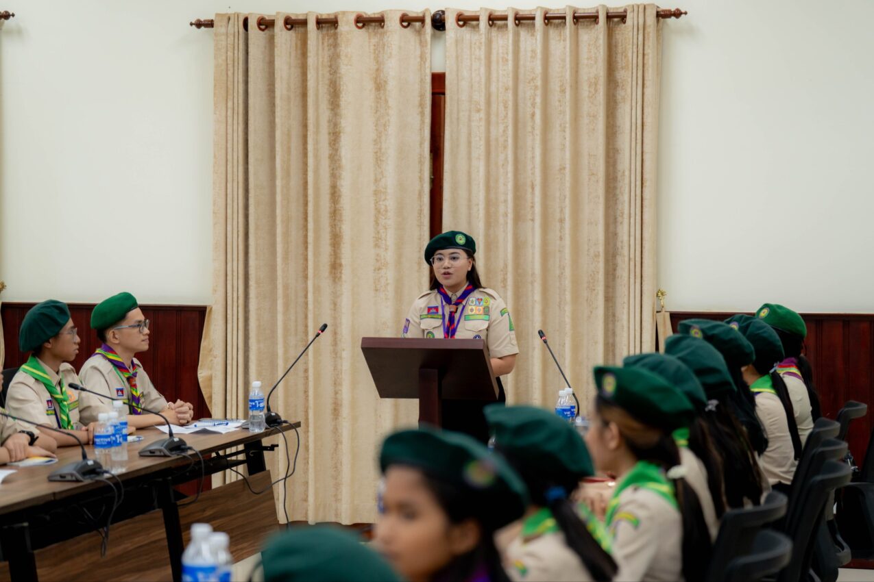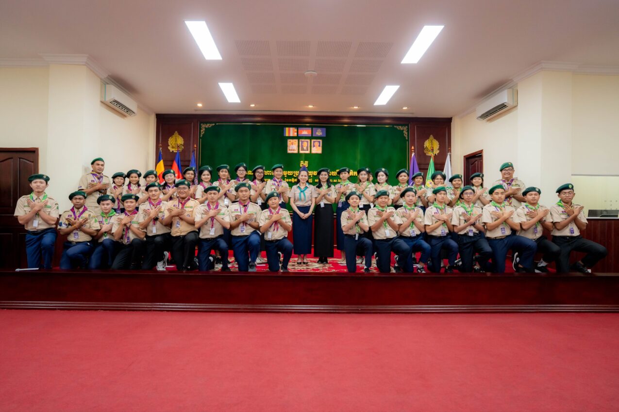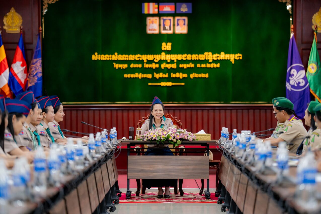 លោកជំទាវបណ្ឌិត ពេជ ចន្ទមុន្នី អគ្គស្នងការ នៃសមាគមកាយឫទ្ធិនារីកម្ពុជា នារសៀលថ្ងៃទី១៤ ខែវិច្ឆិកា ឆ្នាំ២០២៥ បានជួបសំណេះសំណាល និងផ្ដល់អនុសាសន៍ដល់គណៈប្រតិភូកាយឫទ្ធិនារីកម្ពុជា ចំនួន៣៨នាក់ មុននឹងទៅចូលរួមកម្មវិធីបោះជំរំកាយឫទ្ធិជំទង់អន្តរជាតិ ឆ្នាំ២០២៥ នៅប្រទេសសិង្ហបុរី (Singpore International Jamboree 2025) ។