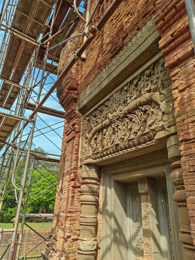 លោក ហួន សុខជាតិ វិស្វករនៃអាជ្ញាធរជាតិអប្សរា ដែលកាន់ការងារអភិរក្ស និងជួសជុល តំបន់រលួសបានលើកឡើងថា ប៉ុន្មានឆ្នាំចុងក្រោយនេះ ក្រុមការងាររបស់លោកបានខិតខំប្រឹងប្រែង ដើម្បីចូលរួមជួយសង្រ្គោះប្រាសាទឥដ្ឋដែលមានហានិភ័យខ្លាំង ឱ្យងើបឈរ និងរឹងមាំឡើងវិញ។ លោក សុខជាតិ បន្ថែមថា ការងារជួសជុលប្រាសាទឥដ្ឋមានភាពលំបាកជាងការជួសជុលប្រាសាទថ្ម ហើយវាប្រឈមនឹងការបាត់បង់ ប្រសិនបើជួយសង្រ្គោះមិនទាន់ពេលវេលា។