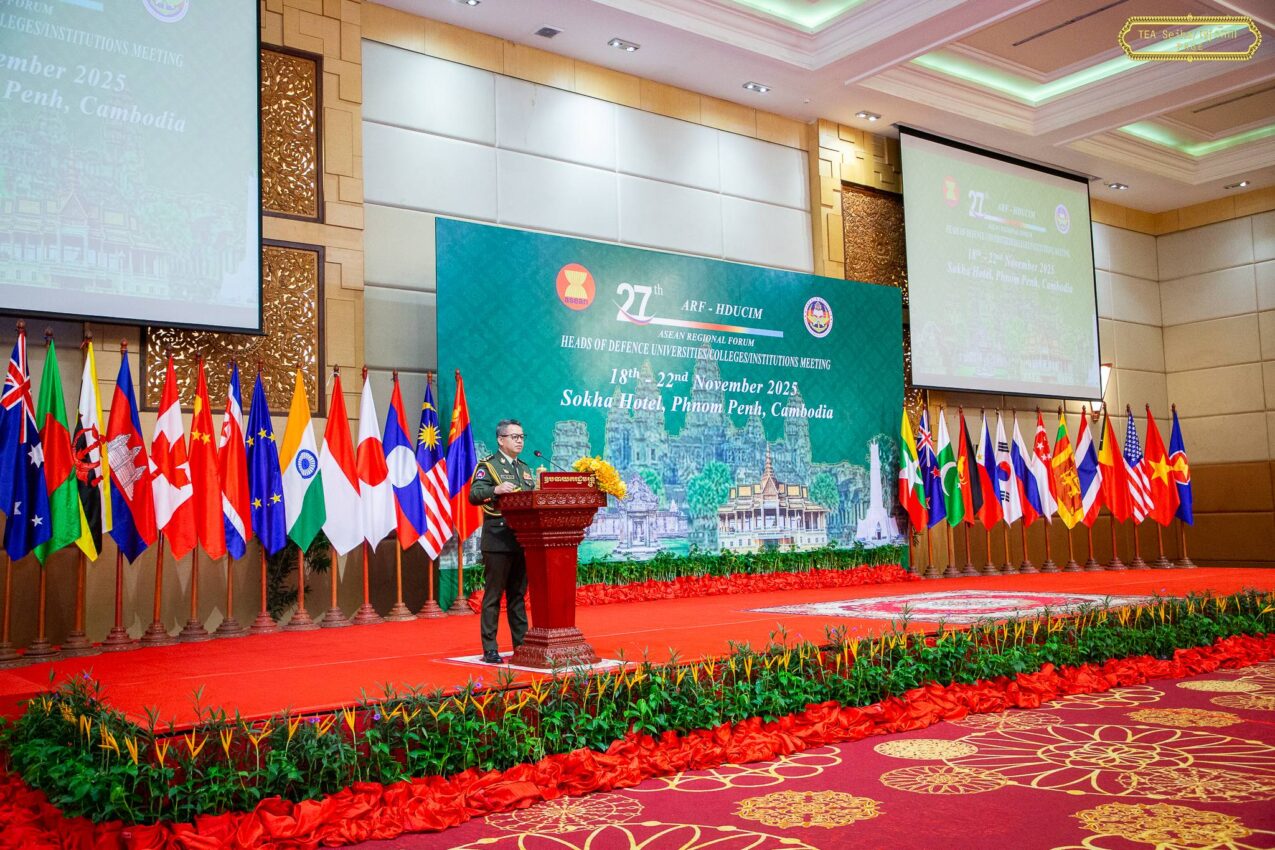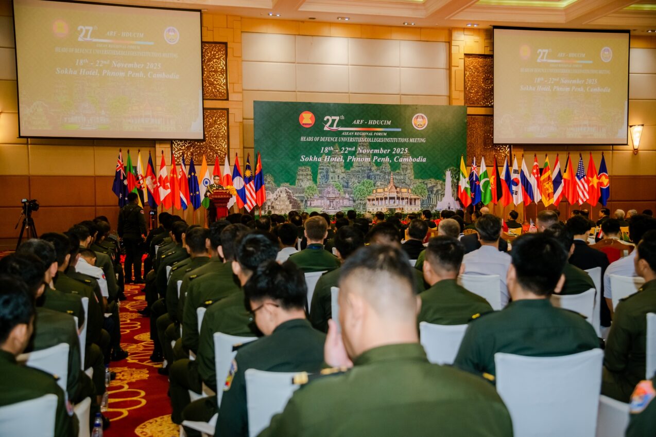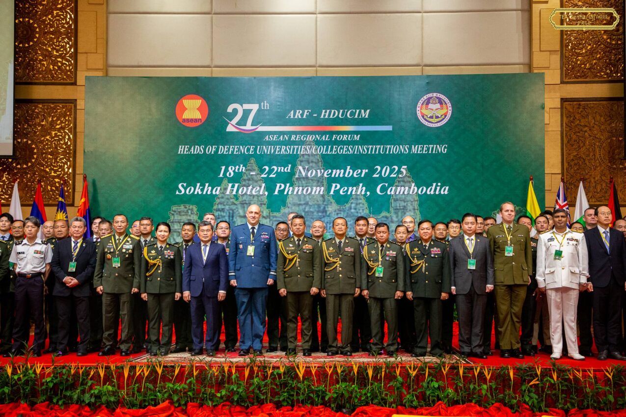 សាកលវិទ្យាល័យការពារជាតិកម្ពុជា និងសហប្រធានជាមួយសាលាបណ្ឌិត្យសភាយោធាកាណាដា បានរៀបចំកិច្ចប្រជុំថ្នាក់ដឹកនាំសាកលវិទ្យាល័យ មហាវិទ្យាល័យ និងវិទ្យាស្ថានការពារជាតិ វេទិការតំបន់អាស៊ាន (ARF HDUCIM) លើកទី២៧ ចាប់ពីថ្ងៃទី១៨-២២ ខែវិច្ឆិកា ឆ្នាំ២០២៥នេះ នៅរាជធានីភ្នំពេញ។