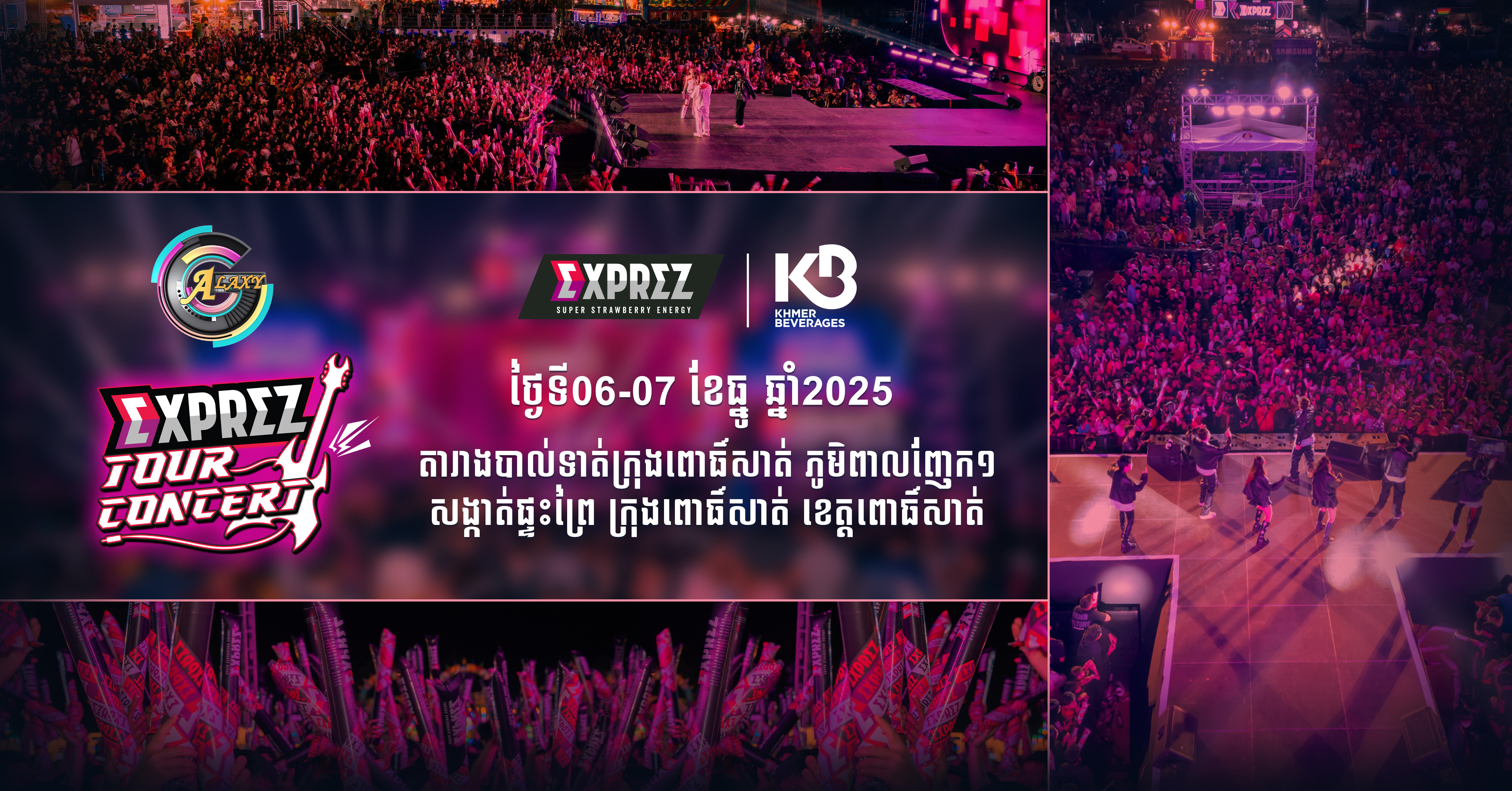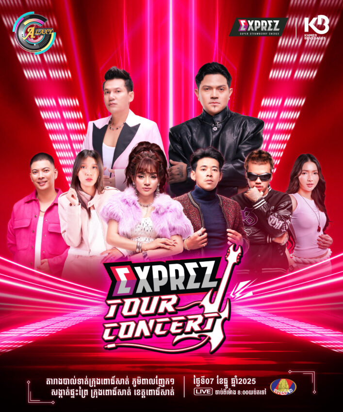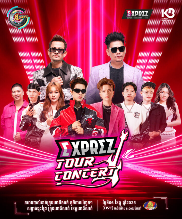 សម្រាប់កំពូលតារាចម្រៀងល្បីៗដែលនឹងអង្រួញឆាក EXPREZ TOUR CONCERT នៅថ្ងៃទី០៦ ខែធ្នូ ឆ្នាំ២០២៥ នៅតារាងបាល់ទាត់ក្រុងពោធិ៍សាត់ ជួបជាមួយលោក ព្រាប សុវត្ថិ , លោក ខេម , សុវត្ថិ មុនីវណ្ណ , សុវត្ថិ សិរីវុឌ្ឍ , កញ្ញា NANA, និងបេក្ខជនប្រឡង CAMBO RAPPER ដោយឡែកសម្រាប់ថ្ងៃទី០៧ ខែធ្នូ វិញជួប វត្តមាន ឧកញ៉ា ខេមរៈ សិរីមន្ត , លោក ខាន់ ជេមស៌ ,អ្នកនាង ខាត់ សួស្តី ,លោក រាជ ប្រាថ្នា ,កញ្ញា អេមមី និង លោក YOUNG $PIDER ។