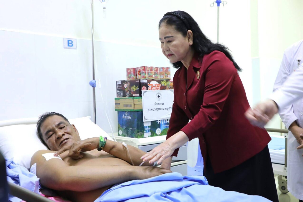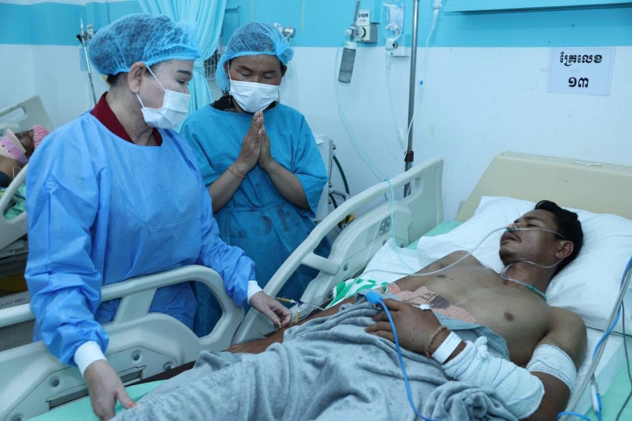ដោយក្តីក្តុកក្តួលរំជួលចិត្ត អាណិតអាសូរ និងក្តីបារម្ភទាំងថ្ងៃទាំងយប់, នៅរសៀលថ្ងៃទី១៥ ខែធ្នូ ឆ្នាំ២០២៥នេះ សម្តេចកិត្តិព្រឹទ្ធបណ្ឌិត ប៊ុន រ៉ានី ហ៊ុនសែន ប្រធានកាកបាទក្រហមកម្ពុជា បានអញ្ជើញចុះសួរសុខទុក្ខ និងនាំយកអំណោយមនុស្សធម៌ផ្តល់ជូនវីរយុទ្ធជនការពារបូរណភាពទឹកដី ដែលរងរបួសក្នុងសមរភូមិ កំពុងសម្រាកព្យាបាលនៅតាមមន្ទីរពេទ្យក្នុងរាជធានីភ្នំពេញ។