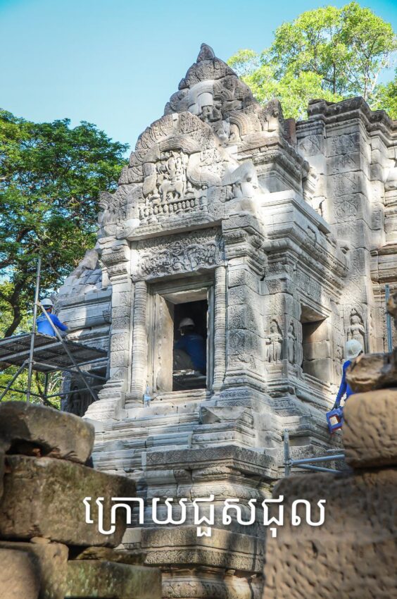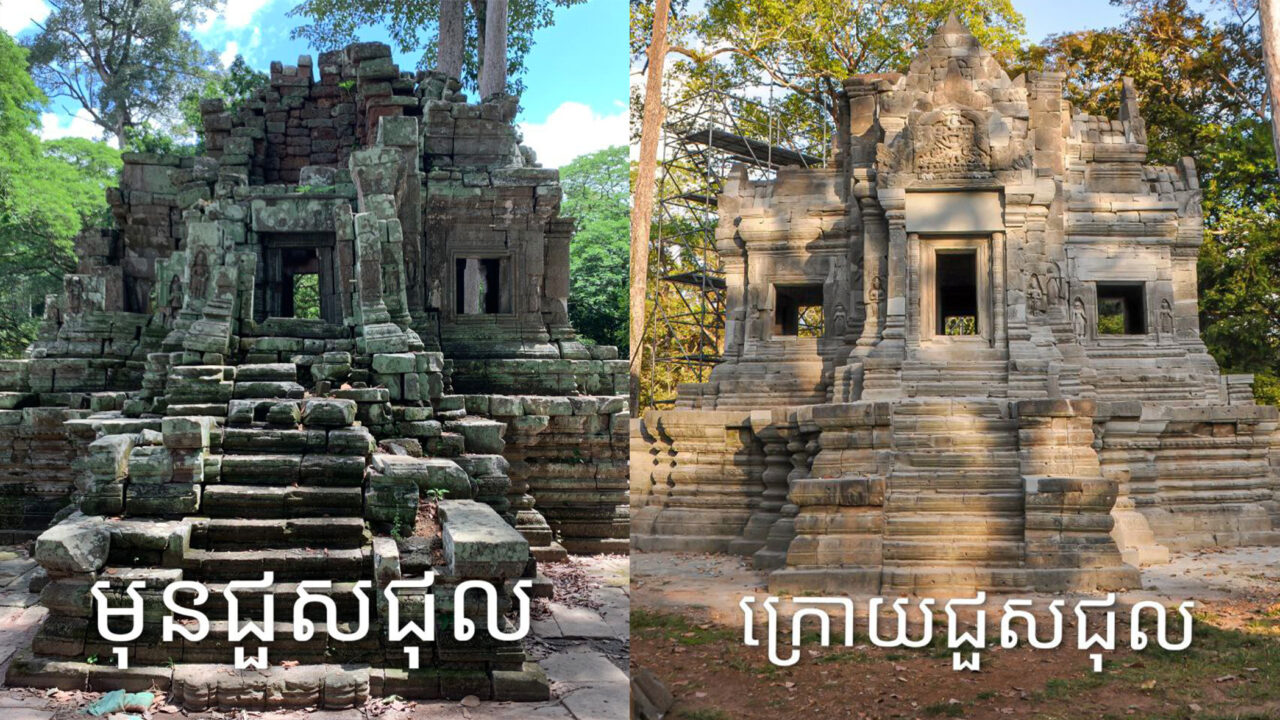 ប្រើពេល ៦ឆ្នាំ ទើបប្រាសាទជមដែលទ្រុឌទ្រោមបាក់បែកខ្លាំង បានងើបឈររឹងមាំឡើងវិញ!