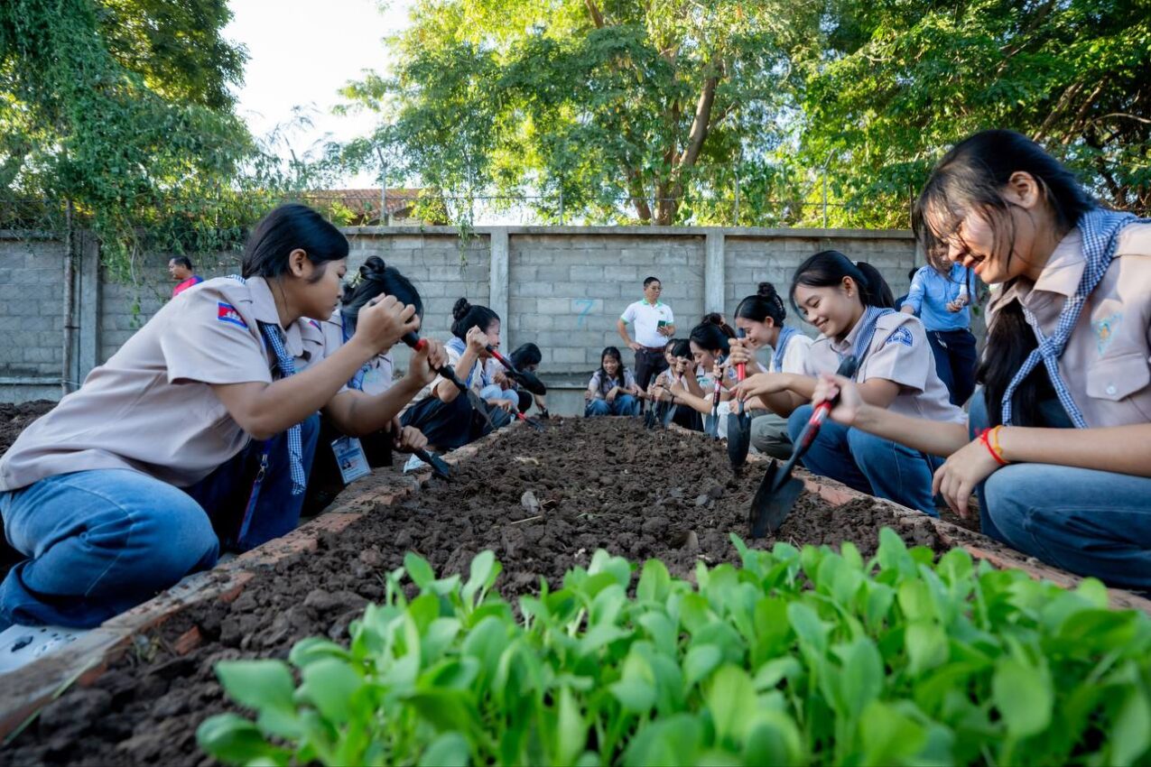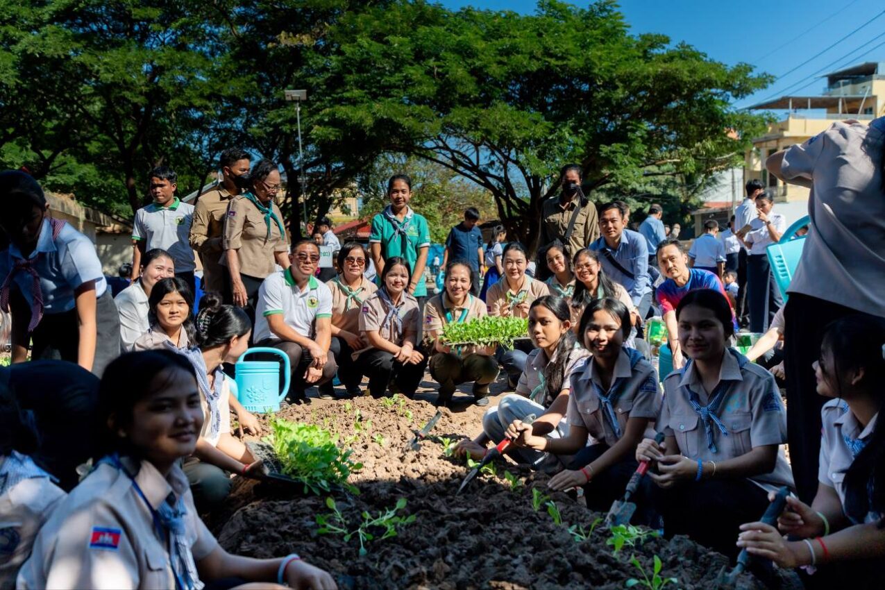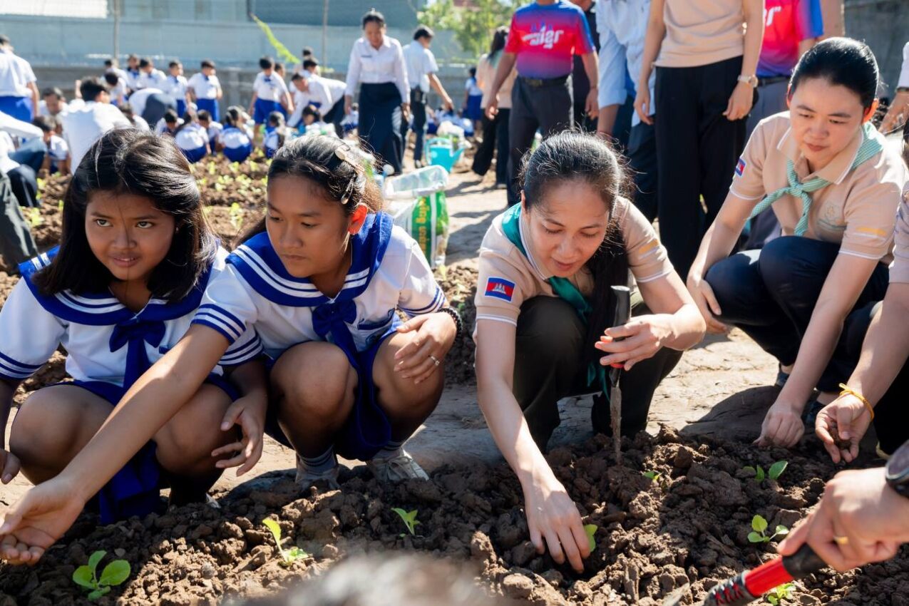 ស្ត្រីទី១ កម្ពុជា អញ្ជើញចូលរួមដាំបន្លែ ចលនា «យើងរួមគ្នាដើម្បីជាតិ» នៅសាលាបឋមសិក្សាភ្នំពេញថ្មី