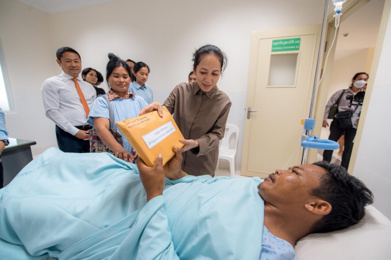 លោកជំទាវបណ្ឌិត ក៏លើកទឹកចិត្ត និងជូនពរដល់យោធិនដែលរងរបួសទាំងអស់ឱ្យមានសុខភាពល្អមាំទាំ សូមឱ្យខិតខំថែរក្សាសុខភាពឱ្យបានមាំមួន ខណៈថ្នាក់ដឹកនាំនៅតែគិតគូរ និងជំរុញដល់ក្រុមគ្រូពេទ្យបន្តមើលថែ រហូតដល់ជាសះស្បើយ ហើយប្ដេជ្ញាមិនបោះបង់បងប្អូនវីរកងទ័ពនោះទេ៕
