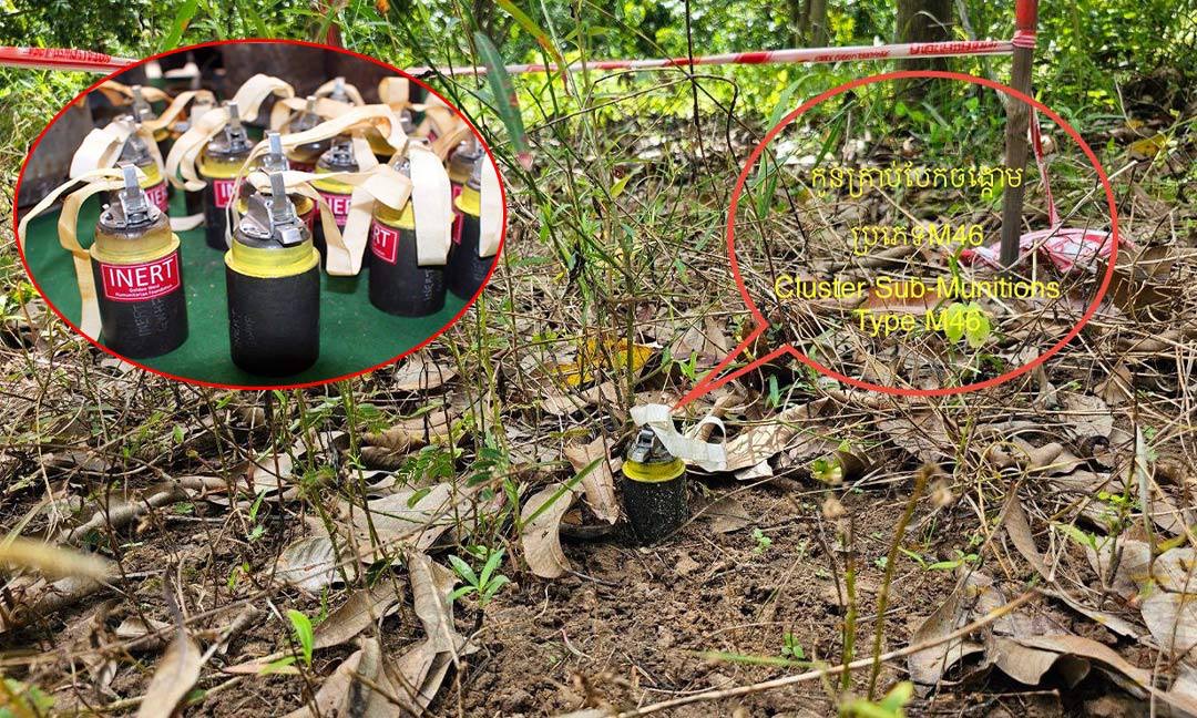 នេះគឺជាគ្រាប់បែកចង្កោម M46 ដែលយោធាថៃប្រើប្រាស់មកលើកម្ពុជា ក្នុងសកម្មភាពឈ្លានពានប្រដាប់របស់ខ្លួនមកលើអធិបតេយ្យនិងបូរណភាពដែនដីកម្ពុជា។ វាមិនមែនគ្រាន់តែជាអាវុធនោះទេ ប៉ុន្តែវាជាអន្ទាក់សម្រាប់ជនស៊ីវិល។ គ្រាប់ប្រភេទនេះងាយនឹងផ្ទុះ។ ការប៉ះស្រាលៗ រំញ័រតិចតួច ការចង់ដឹង កាេចង់ឃើញរបស់កុមារ ឧបករណ៍របស់កសិករនៅក្នុងដី មួយណាក៏អាចបង្កឱ្យមានគ្រោះថ្នាក់ដល់ជីវិតផងដែរ។ នេះជាការគូសបញ្ជាក់របស់អាជ្ញាធរមីនកម្ពុជា។