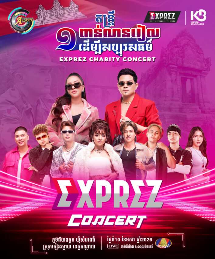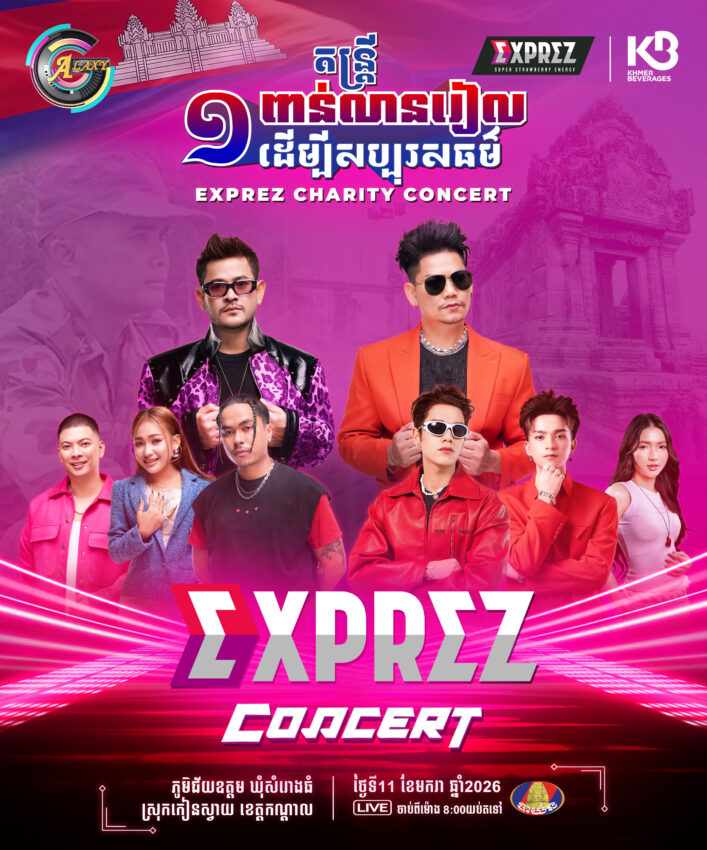 ព្រឹត្តិការណ៍ប្រគំតន្រ្តីសប្បុរសធម៌ Exprez Charity Concert នឹងរៀបចំឡើងនៅថ្ងៃទី ១០ ខែ មករា ឆ្នាំ ២០២៦ នៅ ភូមិជ័យឧត្តម ឃុំសំរោងធំ ស្រុកកៀនស្វាយ ខេត្តកណ្តាល ដោយមានការចូលរួមសម្តែងនិងច្រៀងពីតារាចម្រៀងល្បីៗដូចជា ឧកញ៉ា ខេមរៈ សិរីមន្ត , កញ្ញា តន់ ចន្ទសីម៉ា , លោក ជុំ លីណូ ,អ្នកនាង ខាត់ សួស្តី ,លោក វង្ស ថាណាន់ និងបេក្ខជនកម្មវិធី CAMBO RAPPER។ ដោយឡែក ថ្ងៃទី ១១ ខែមករា ឆ្នាំ ២០២៦ ជូបជាមួយកំពូលតារាចម្រៀង លោក ព្រាប សុវត្ថិ , លោក ខេម ,លោក Tempo Tris , លោក សុវត្ថិ មុនីវណ្ណ ,លោក សុវត្ថិ សិរីវុឌ្ឍ និងកញ្ញា NANA ដែលត្រៀមអង្រួនឆាក Exprez Charity Concert ។