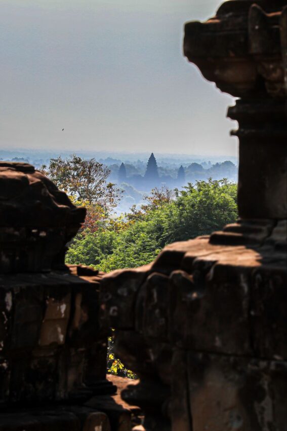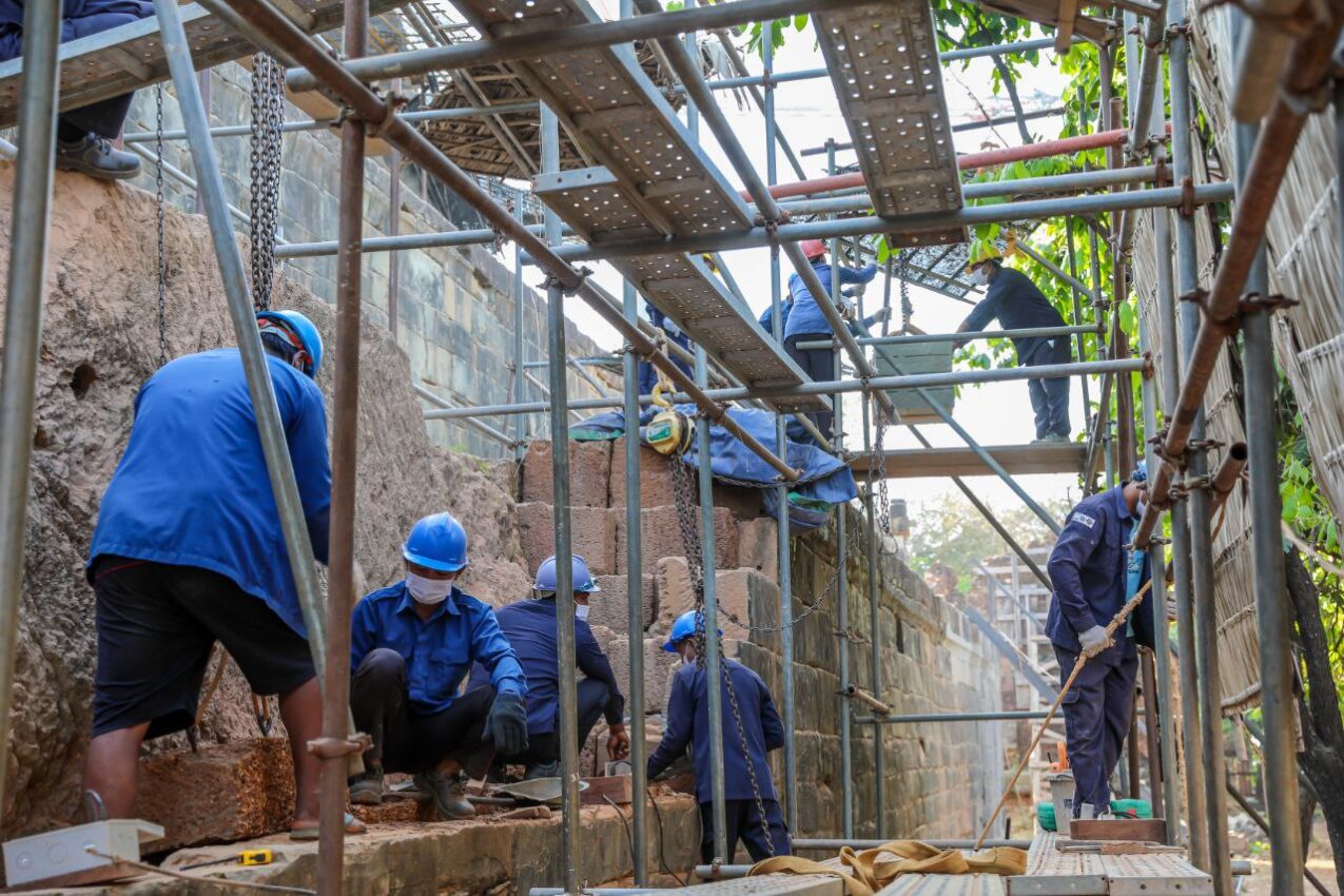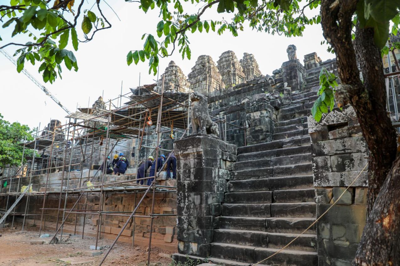 ចំពោះស្ថានភាពការខូចខាតនៅជ្រុងខាងលិច អ្នកជំនាញពន្យល់ថា មានការស្រុតគ្រឹះ ថ្មងាកចេញពីគ្នា និងមានការដួលរលុះថ្មនៅផ្នែកជញ្ជាំង និងចម្លាក់តោ។ ក្រៅពីជួសជុលពង្រឹងឡើងវិញ ក្រុមការងារក៏បានពង្រឹងថ្មភ្នំដែលខ្លះបានប្រេះ និងមានការពុកផុយ ដោយប្រើបច្ចេកទេសមួយចំនួនដើម្បីឱ្យវារឹងមាំឡើងវិញ។