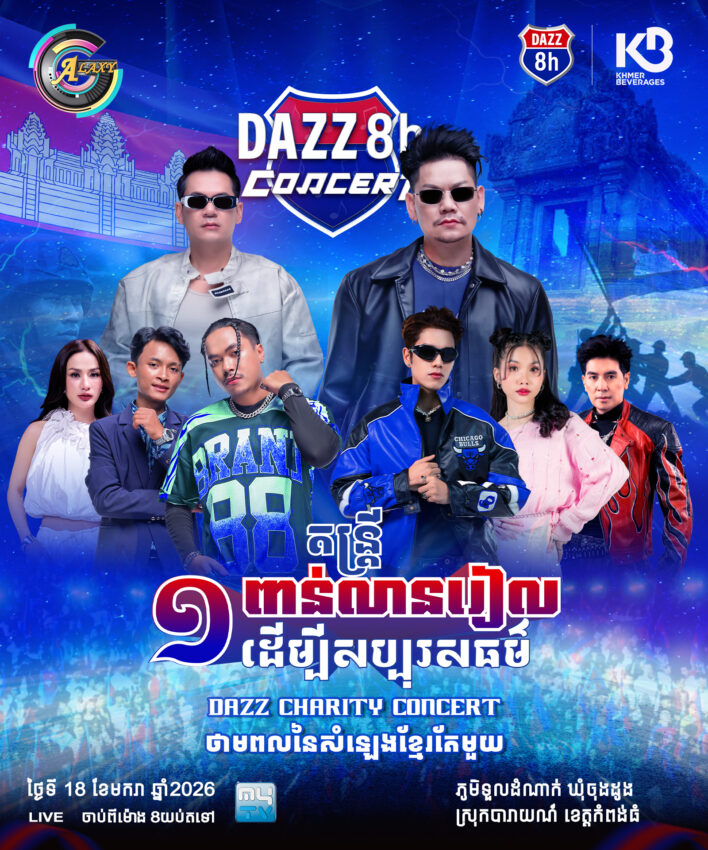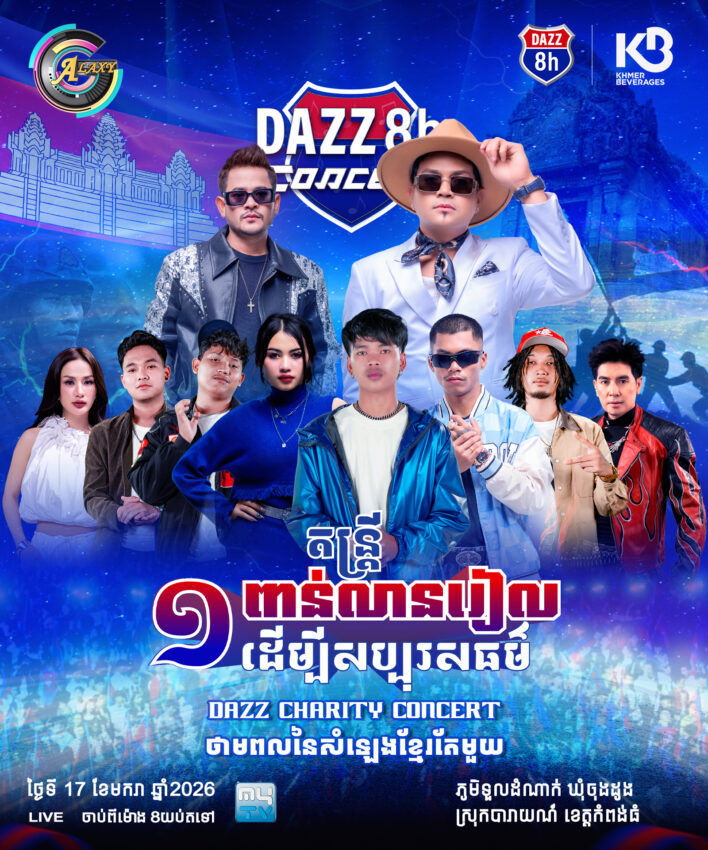 កុំភ្លេចណាត់ជួបគ្នានៅក្នុងព្រឹត្តិការណ៍ប្រគំតន្រ្តី DAZZ CHARITY CONCERTនៅលើទឹកដីស្រុកបារាយណ៍ ខេត្តកំពង់ធំ ទាំងអស់គ្នា៕
