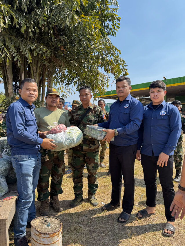 ក្រុមយុវជនបូជាការពារយុត្តិធម៌ ប្រគល់ស្បៀងជូនកងទ័ពកំពុងឈរជេីងការពារទឹកដីតាមព្រំដែនកម្ពុជា-ថៃ ដែលមានការចូលរួមពីសប្បុរសជន