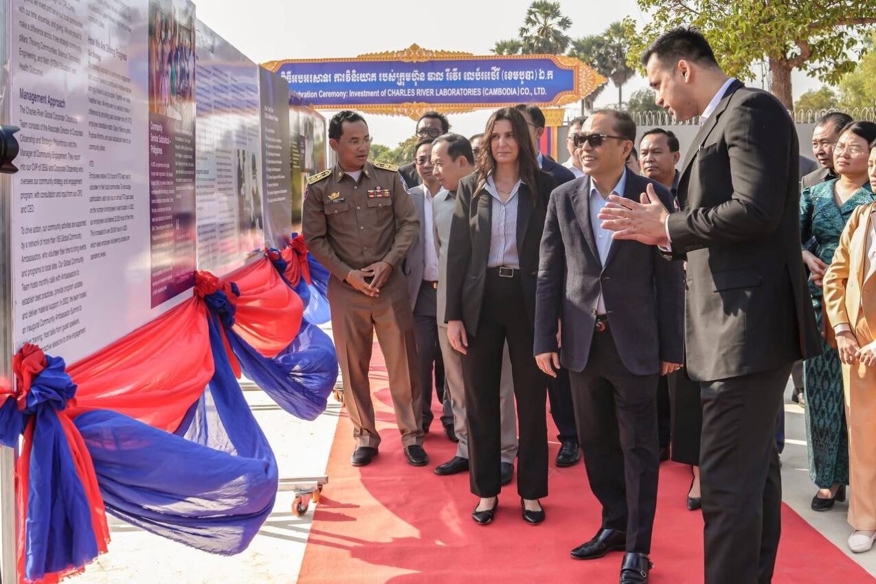 ពិធីអបអរសាទរការវិនិយោគរបស់ក្រុមហ៊ុន Charles River Laboratories (CRL) ធ្វើឡើងក្រោមវត្តមានឯកឧត្តម វង្សី វិស្សុត ឧបនាយករដ្ឋមន្រ្តីប្រចាំការ រដ្ឋមន្រ្តី ទទួលបន្ទុកទីស្ដីការគណៈរដ្ឋមន្រ្តី និងមានចូលរួមពីសំណាក់តំណាងស្ថានទូតសហរដ្ឋអាម៉េរិកនៅកម្ពុជា កាលពីព្រឹកថ្ងៃទី១៥ ខែមករា ឆ្នាំ២០២៦។