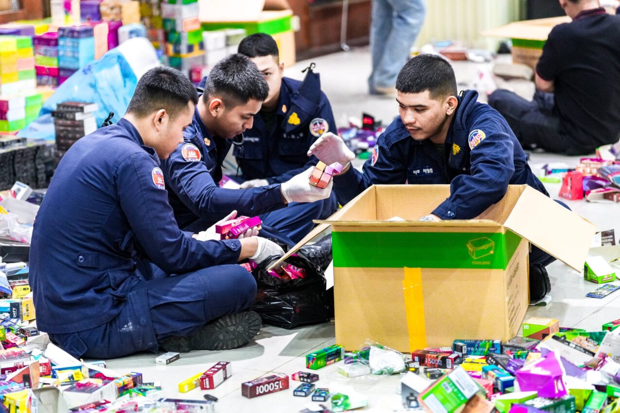 ទីតាំងលួចលក់ឧបករណ៍អេឡិចត្រូនិកសម្រាប់ជក់សារធាតុគីមី មានម្ចាស់ឈ្មោះ តាំង សុខហេង ភេទប្រុស អាយុ ៥៨ឆ្នាំ ។ ក្នុងប្រតិបត្តិការ កងរាជអាវុធហត្ថរាជធានីភ្នំពេញ បានចាប់យកវត្ថុតាង រួមមាន៖ ម៉ាស៊ីនជក់ចម្រុះម៉ាក ចំនួន ២៦៨,៥០៤ ម៉ាស៊ីន, ក្បាលជក់ចម្រុះម៉ាក ចំនួន ៦៩៦១៥ក្បាល,ទឹកVape (វេប) ចំនួន៧៩២ដប និងម៉ាស៊ីនកិនកញ្ឆា ចំនួន៤៤៣ម៉ាស៊ីន ដែលករណីដូចគ្នានេះ អាវុធហត្ថរាជធានីភ្នំពេញ តែងធ្វើការទប់ស្កាត់និងបង្ក្រាបជាច្រើនកន្លែងមកហើយ។