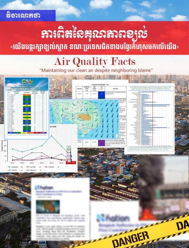 – ហ៊ានទទួលស្គាល់ការពិត៖ សូមបញ្ឈប់ការទម្លាក់កំហុសមកលើប្រទេសកម្ពុជាហើយងាកមកពិនិត្យប្រភពបំពុលក្នុងស្រុករបស់ខ្លួន (រោងចក្រ ភ្លើងឆេះព្រៃ និងការបំភាយឧស្ម័ន) ដោយភាពត្រឹមត្រូវតាមបច្ចេកទេស