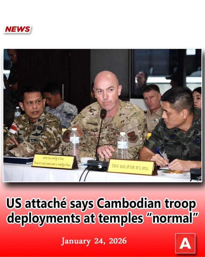 តាមរយៈសំណេរលើគណនីហ្វេសប៊ុកឯកឧត្តម សួន សេរីរដ្ឋា បានអះអាងថា ការប៉ុនប៉ងរបស់ភាគីថៃ ក្នុងការនាំគណៈប្រតិភូអនុព័ន្ធយោធាមកពី ២០ ប្រទេស ទៅកាន់តំបន់ម៉អ៊ីឌែង ខេត្តស៊ីសាកេត ដើម្បីយកការគាំទ្រផ្នែកសីលធម៌ បែរជាត្រូវជួបនឹង«តថភាពយុទ្ធសាស្ត្រ» ដែលបកស្រាយដោយភាពប៉ិនប្រសប់ច្បាស់ៗ ពីសំណាក់លោកវរសេនីយ៍ឯក Matthew P. Stueck អនុព័ន្ធកងទ័ពអាកាសសហរដ្ឋអាមេរិកប្រចាំប្រទេសថៃ។
