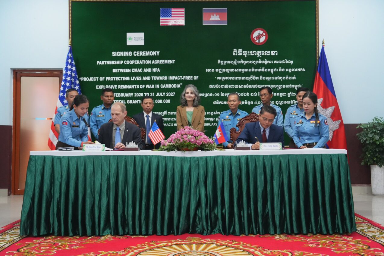 ឯកឧត្តម ហេង រតនា ប្រតិភូរាជរដ្ឋាភិបាលទទួលបន្ទុកជាអគ្គនាយកស៊ីម៉ាក់ និងលោក Hans Peter Risser ប្រធានអង្គការNPA នារសៀលថ្ងៃទី៥ ខែកុម្ភៈ ឆ្នាំ២០២៦ បានចូលរួមជាសាក្សីពីសំណាក់លោកស្រី Kelly Saltzman សហការីផ្នែកនយោបាយ នៃស្ថានទូតសហរដ្ឋអាម៉េរិកប្រចាំនៅកម្ពុជា បានចុះហត្ថលេខាលើកិច្ចព្រមព្រៀងកិច្ចសហប្រតិបត្តិការភាពជាដៃគូរវាង មជ្ឈមណ្ឌលសកម្មភាពកំចាត់មីនកម្ពុជា និងអង្គការNPA ក្រោមគម្រោង “ ការពារអាយុជីវិត និងឆ្ពោះទៅលុបបំបាត់ផលប៉ះពាល់ដោយសារសំណល់យុទ្ធភណ្ឌសង្គ្រាមនៅកម្ពុជា ” តាមរយៈការអនុវត្តគម្រោងកម្មវិធីការស្រាវជ្រាវនិងបោសសម្អាតគ្រាប់បែកចង្កោម ការបោសសម្អាតមីន និងការដោះស្រាយការគំរាមកំហែងដែលនៅសេសសល់ សម្រាប់រយៈពេល១៨ខែ ចាប់ពីថ្ងៃទី០១ ខែកុម្ភៈ ឆ្នាំ២០២៦ ដល់ថ្ងៃទី៣១ ខែកក្កដា ឆ្នាំ២០២៧ ដែលមានថវិកាគាំទ្រគម្រោងសរុបចំនួន៥.០០០.០០០ដុល្លារអាម៉េរិក ដែលក្នុងនោះអង្គភាពCMAC បានទទួលថវិកាចំនួន៤.០០០.០០០ដុល្លារអាម៉េរិក តាមរយៈអង្គការNPA និងអង្គការNPA បានទទួលថវិកាចំនួន១.០០០.០០០ដុលា្លរអាម៉េរិក។