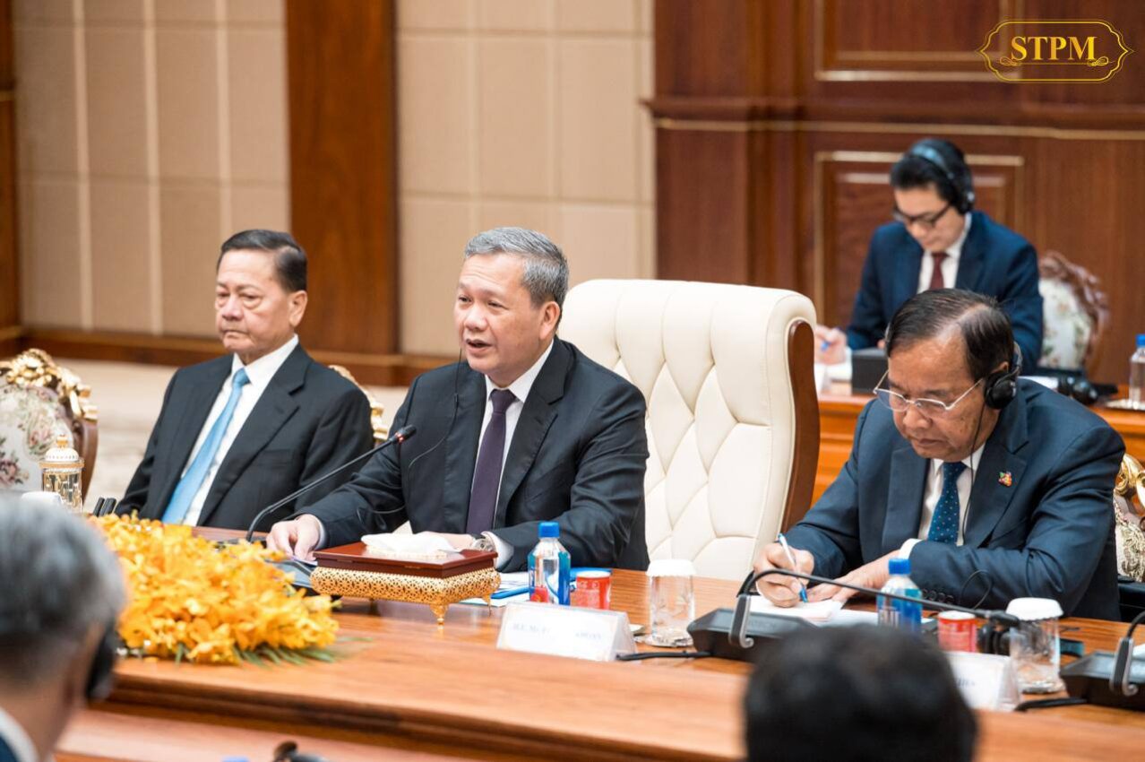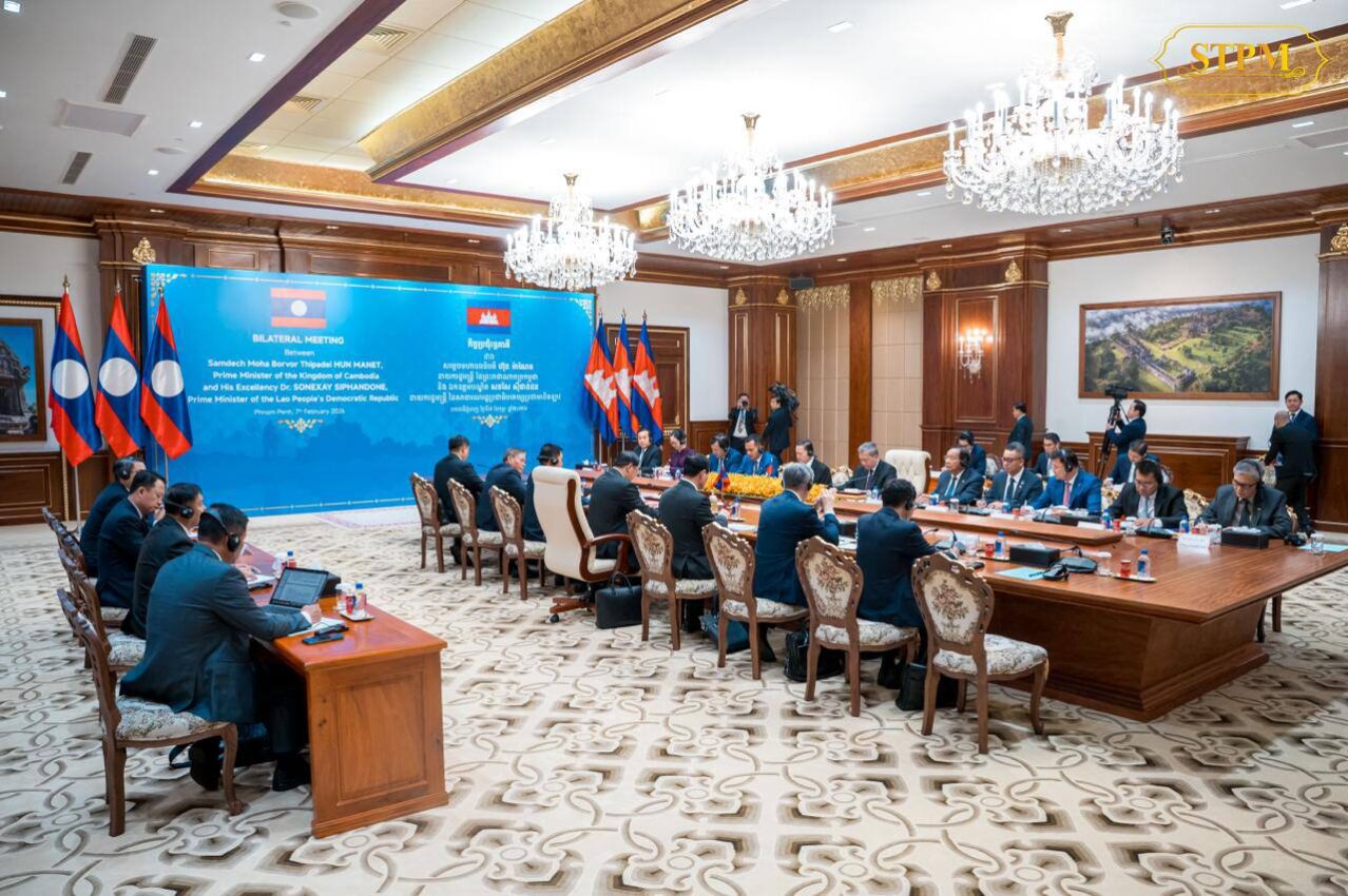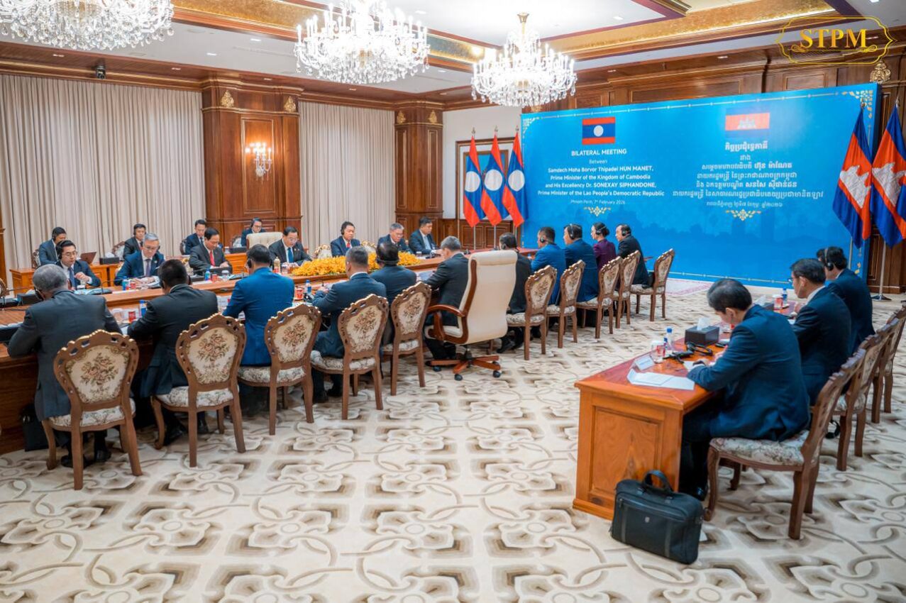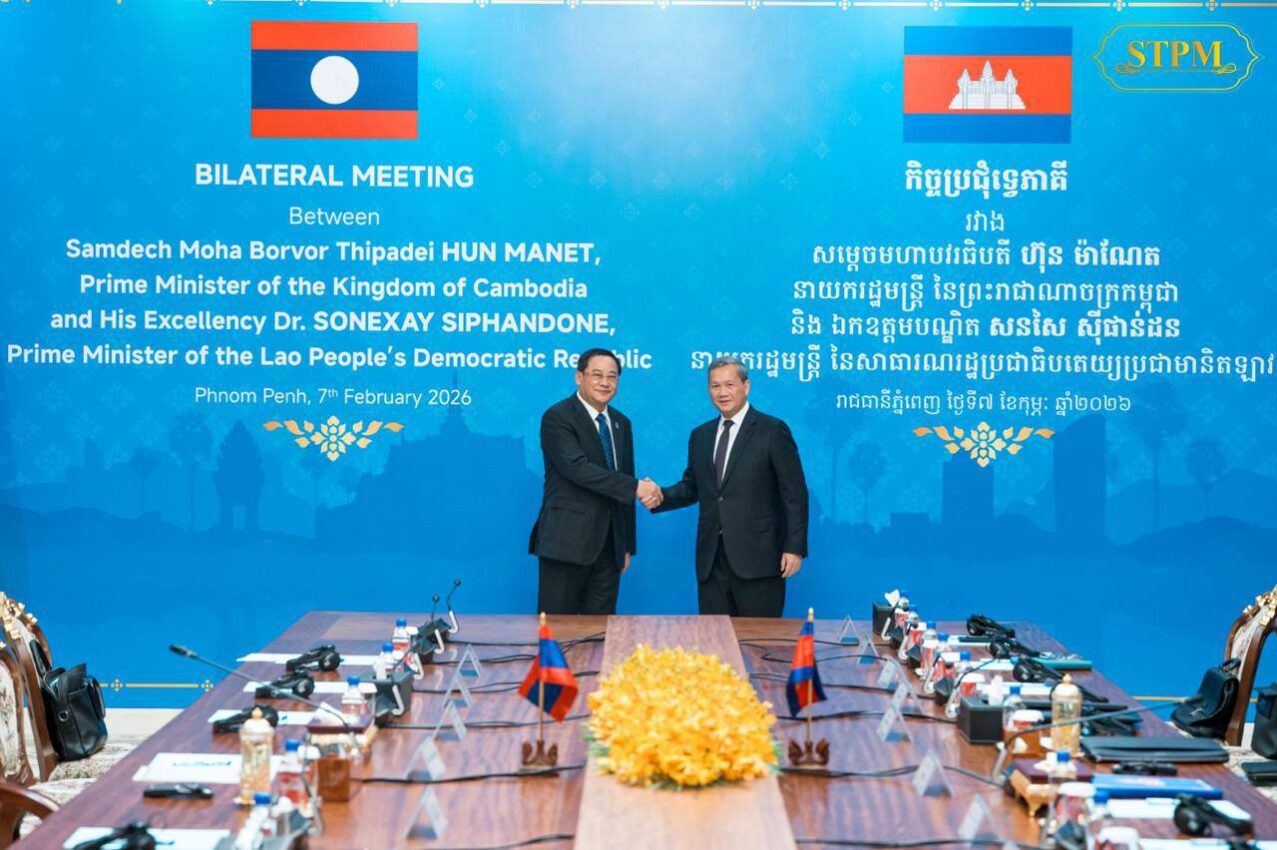 នារសៀលថ្ងៃទី០៧ ខែកុម្ភៈ ឆ្នាំ២០២៦, សម្តេចបវរធិបតី ហ៊ុន ម៉ាណែត នាយករដ្ឋមន្រ្តី នៃកម្ពុជា បានទទួលជួបពិភាក្សាការងារជាមួយ ឯកឧត្តម សនសៃ ស៊ីផាន់ដន (Sonexay Siphandone) នាយករដ្ឋមន្រ្តីនៃសាធារណរដ្ឋប្រជាធិបតេយ្យប្រជាមានិតឡាវ នៅវិមានសាមគ្គីភាព ក្នុងឱកាសដែលឯកឧត្តមនាយករដ្ឋមន្ត្រីឡាវអញ្ជើញចូលរួមកិច្ចប្រជុំរវាងថ្នាក់ដឹកនាំកំពូលគណបក្សប្រជាជនកម្ពុជា, ថ្នាក់ដឹកនាំកំពូលគណបក្សកុម្មុយនីស្តវៀតណាម និងថ្នាក់ដឹកនាំកំពូលគណបក្សប្រជាជនបដិវត្តន៍ឡាវ នៅរាជធានីភ្នំពេញ ព្រះរាជាណាចក្រកម្ពុជា ពីថ្ងៃទី៦ដល់ថ្ងៃទី៧ ខែកុម្ភៈ ឆ្នាំ២០២៦។