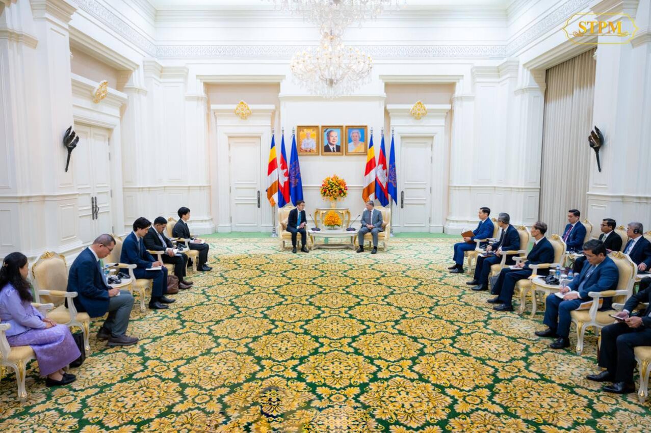 សម្ដេចបវរធិបតី ហ៊ុន ម៉ាណែត នាយករដ្ឋមន្ត្រី នៃព្រះរាជាណាចក្រកម្ពុជា បានអនុញ្ញាតឱ្យលោកសាស្ត្រាចារ្យ តេតស៊ូយ៉ា វ៉ាតាណាបេ (Tetsuya WATANABE) ប្រធានវិទ្យាស្ថានស្រាវជ្រាវសេដ្ឋកិច្ចសម្រាប់កិច្ចការអាស៊ាន និងអាស៊ីបូព៌ា (ERIA) ចូលជួបសម្ដែងការគួរសម និងពិភាក្សាការងារ នៅវិមានសន្ដិភាព នាព្រឹកថ្ងៃទី៩ ខែកុម្ភៈ ឆ្នាំ២០២៦ ។