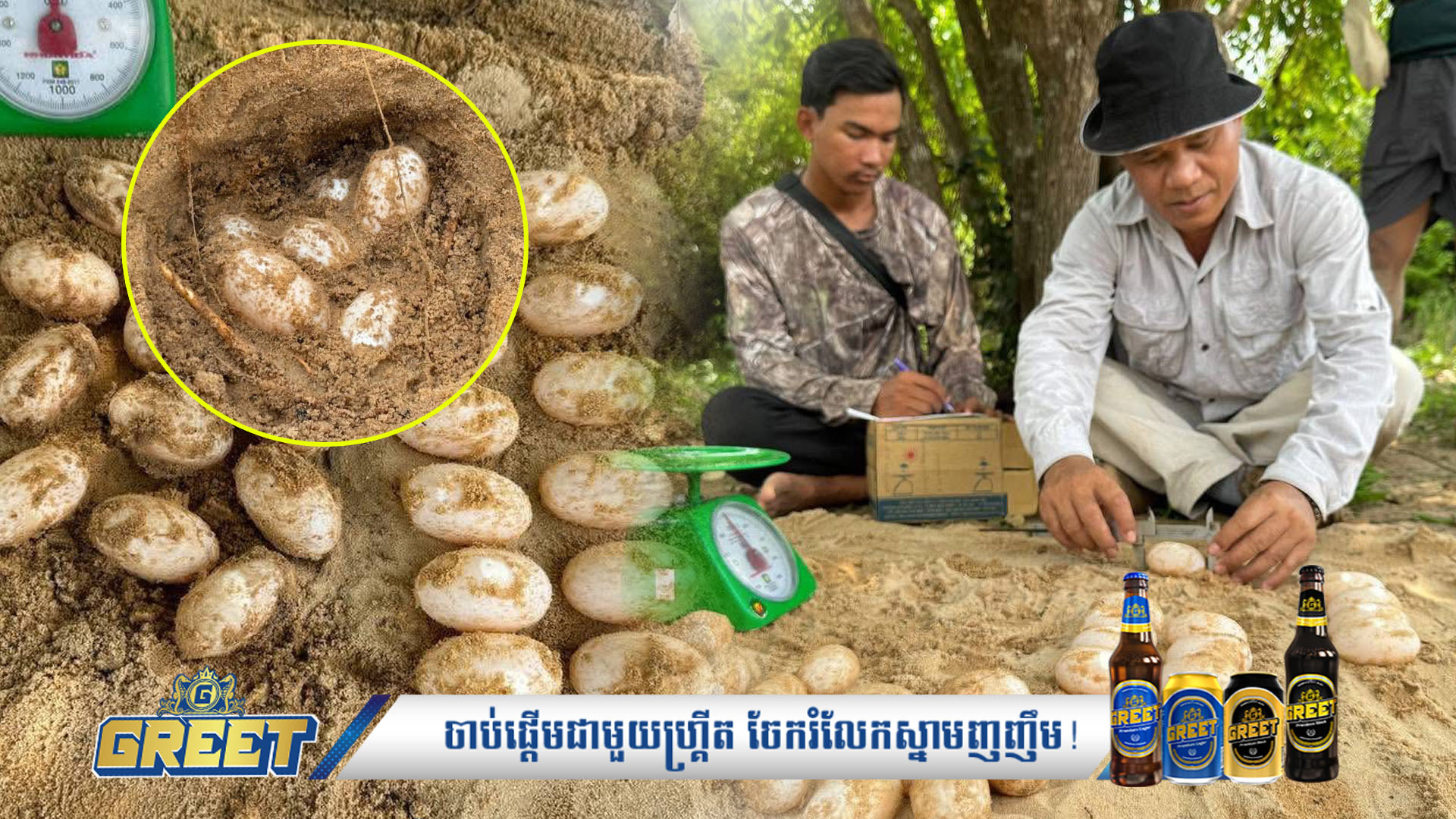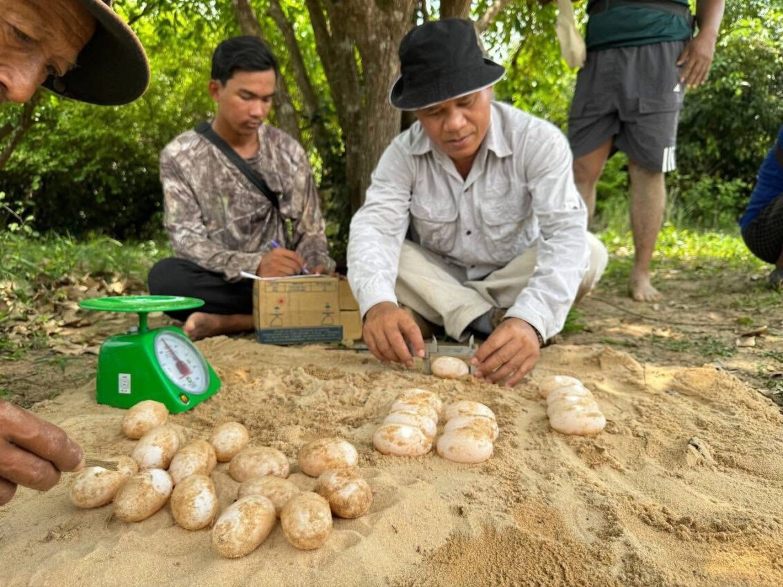 ប្រទះឃើញ ពងអណ្តើកហ្លួងចំនួន ២៥គ្រាប់ នៅឆ្នេរខ្សាច់ព្រែកកំពង់លើ ក្នុងខេត្តកោះកុង