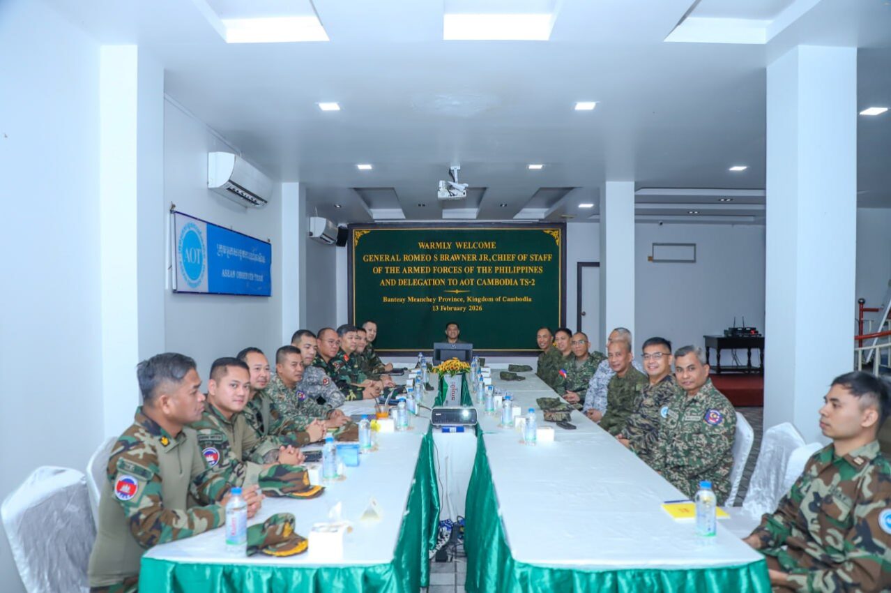 នៅថ្ងៃសុក្រ ទី១៣ ខែកុម្ភៈ ឆ្នាំ២០២៦នេះ ក្រុមសម្របសម្រួល (CLG) នៃព្រះរាជាណាចក្រកម្ពុជា បានសម្របសម្រួលជូនដល់ក្រុមអ្នកសង្កេតការណ៍អាស៊ាន (AOT) ទទួលស្វាគមន៍ ឯកឧត្តម នាយឧត្តមសេនីយ៍ ROMEO S BRAWNER JR អគ្គមេបញ្ជាការ នៃកងទ័ពហ្វីលីពីន ដែលអញ្ជើញមកទស្សនកិច្ចទីតាំងមួយចំនួននៅក្នុងខេត្តបន្ទាយមានជ័យ។