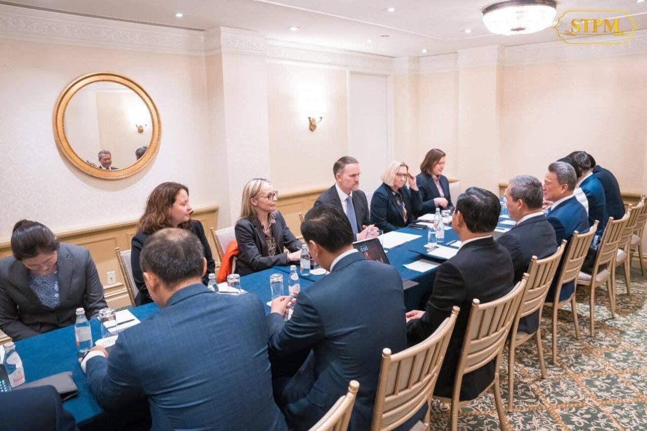 នារសៀលថ្ងៃទី១៨ ខែកុម្ភៈ ឆ្នាំ២០២៦, សម្ដេចមហាបវរធិបតី ហ៊ុន ម៉ាណែត នាយករដ្ឋមន្ត្រី នៃព្រះរាជាណាចក្រកម្ពុជា បានជួបពិភាក្សាការងារជាមួយ ឯកឧត្ដមឯកអគ្គរដ្ឋទូត Jamieson Greer តំណាងពាណិជ្ជកម្មសហរដ្ឋអាម៉េរិក ក្នុងឱកាសនៃការដឹកនាំគណៈប្រតិភូរាជរដ្ឋាភិបាលកម្ពុជាចូលរួមកិច្ចប្រជុំលើកដំបូងនៃក្រុមប្រឹក្សាសន្តិភាព (Board of Peace) នៅរដ្ឋធានីវ៉ាស៊ីនតោន សហរដ្ឋអាម៉េរិក។