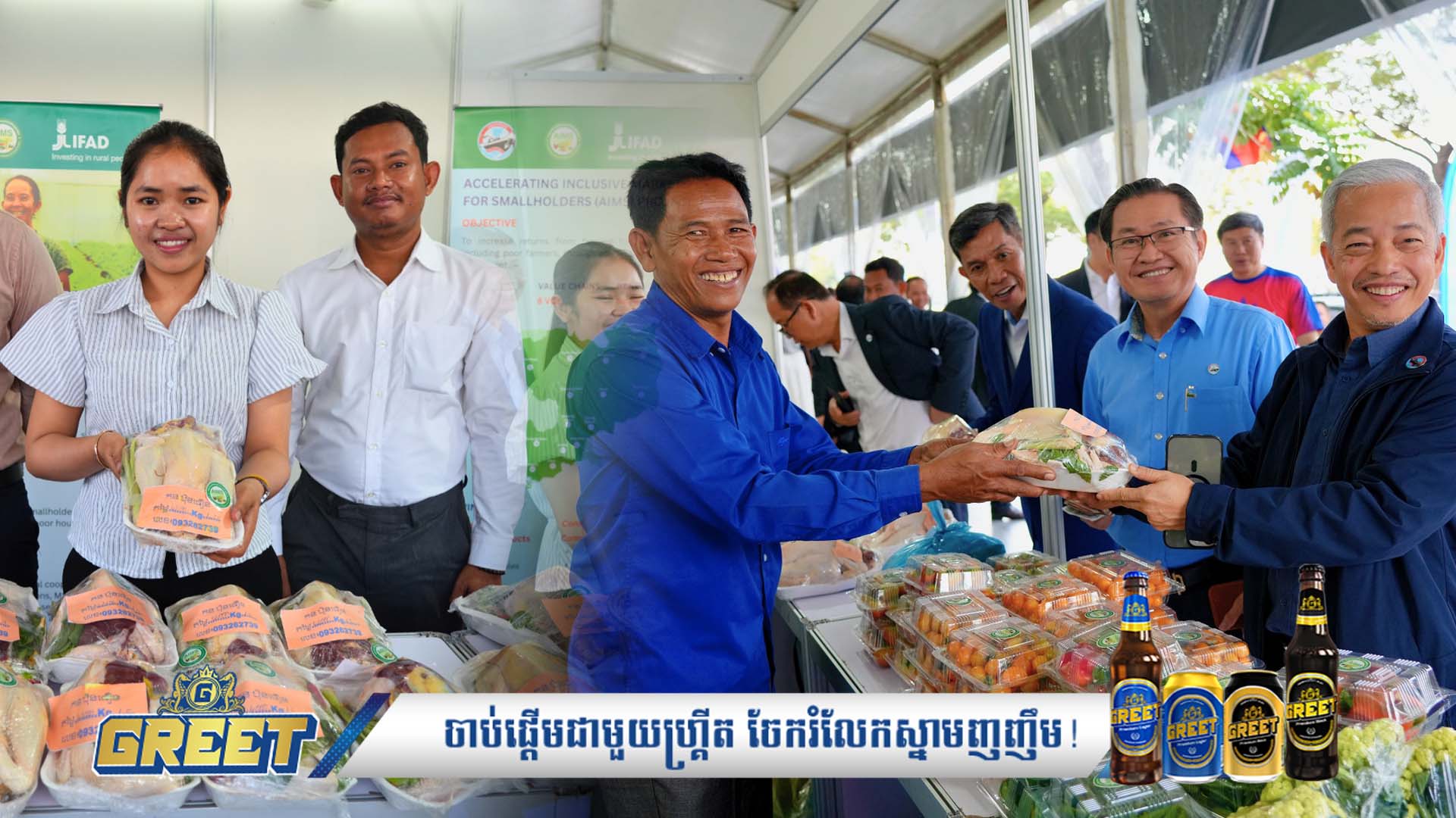 នៅថ្ងៃបើក «យុទ្ធនាការផលិតផលជាតិ ឬ #MadeInCambodia» កសិករចិញ្ចឹមមាន់ខ្មែរ និងបន្លែសុវត្ថិភាពរបស់គម្រោងជំរុញទីផ្សារសម្រាប់កសិកម្មខ្នាតតូច អេមស៍(AIMS) បានបំបែកកំណត់ត្រាការលក់បានយ៉ាងច្រើននៅក្នុងថ្ងៃដំបូងនៃការបើកយុទ្ធនាការ កាលពីពេលថ្មីៗនេះនៅផ្សារទំនើបមួយកន្លែង ក្នុងរាជធានីភ្នំពេញ។