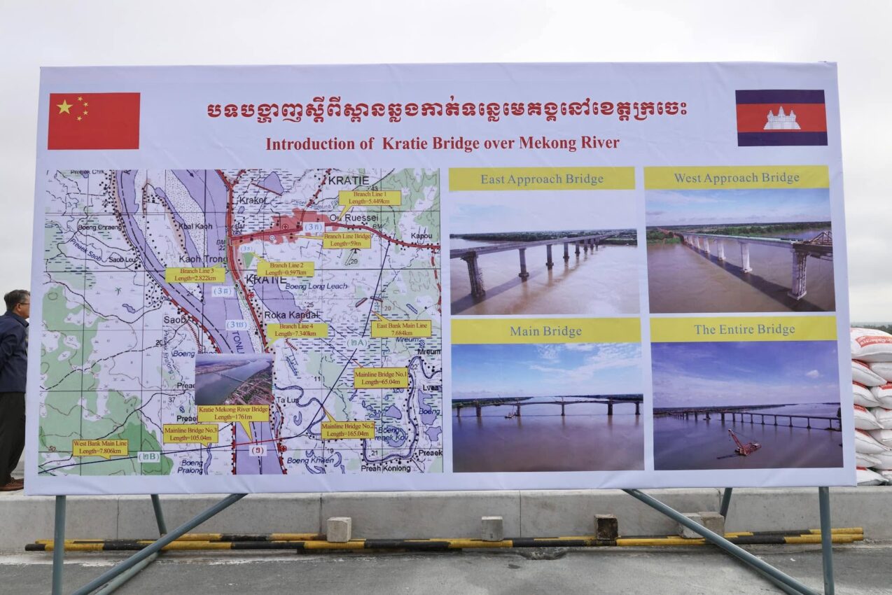 ឯកឧត្តមបានបញ្ជាក់ថា បច្ចុប្បន្នគម្រោងសាងសង់ស្ពានឆ្លងកាត់ទន្លេមេគង្គខេត្តក្រចេះ និងផ្លូវតភ្ជាប់ សម្រចបាន៩៦,៨៤% ក្នុងនោះស្ពានមិត្តភាពកម្ពុជា-ចិន មេគង្គក្រចេះ សម្រេចបាន ៩៨,៤៤% និងការងារផ្លូវមេ និងផ្លូវខ្នែង សម្រេចបាន ៩៩,០៩%។