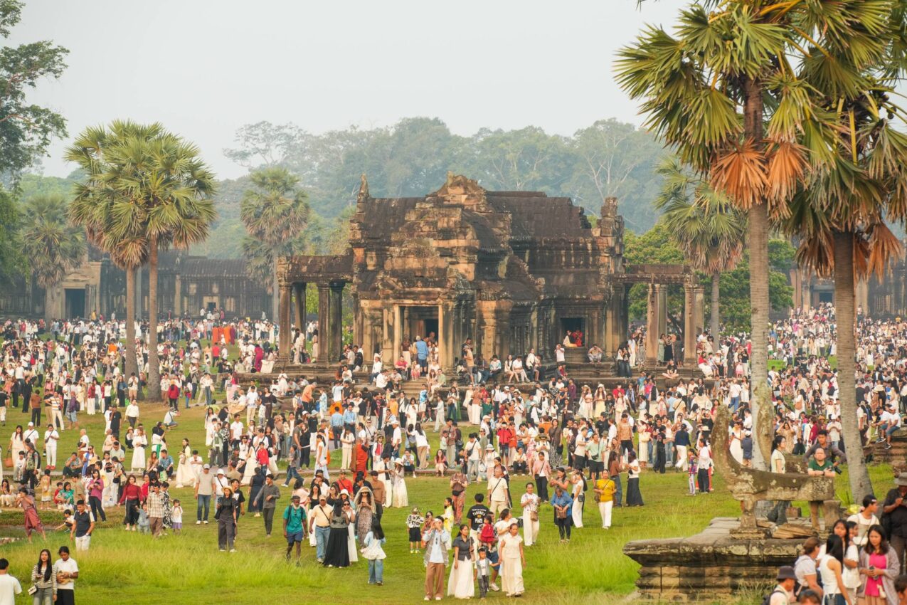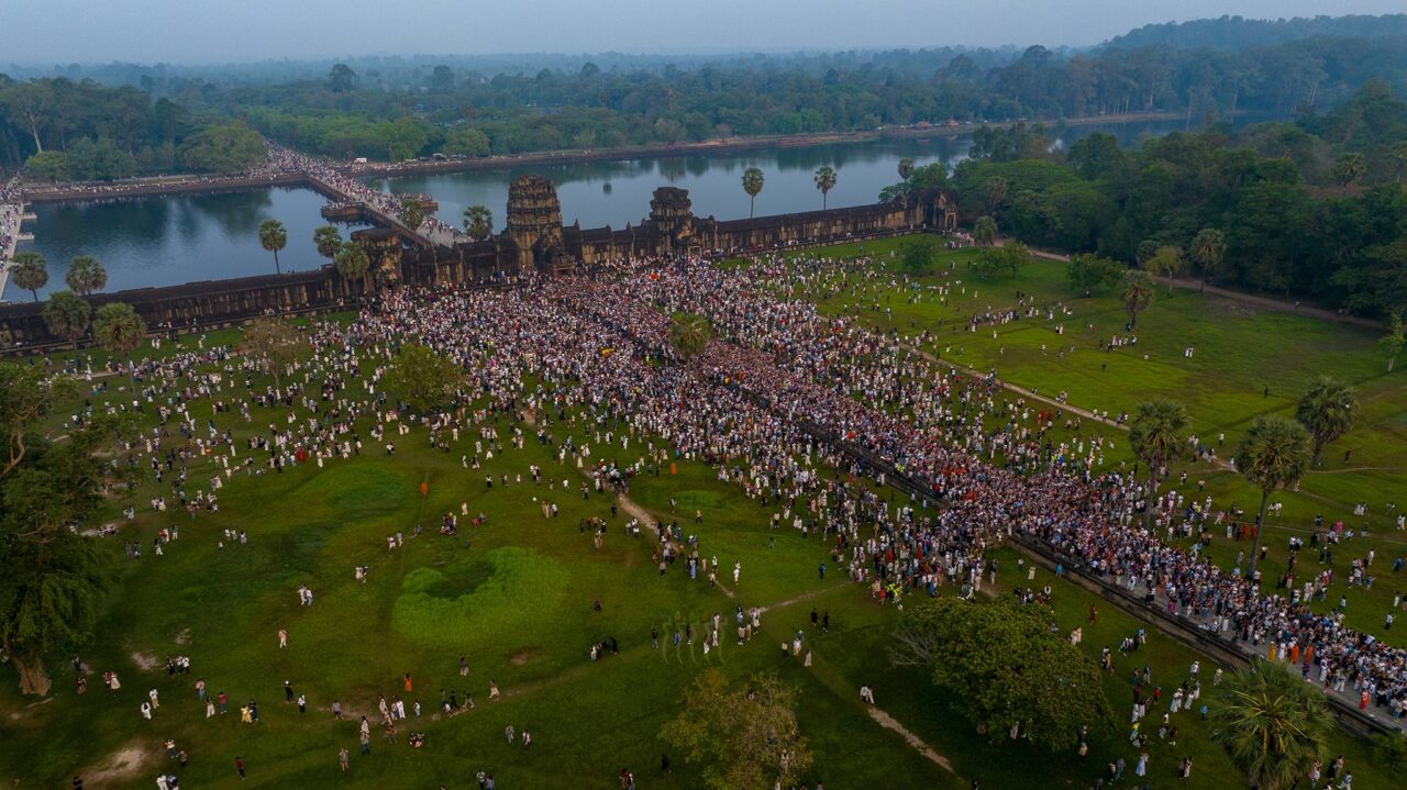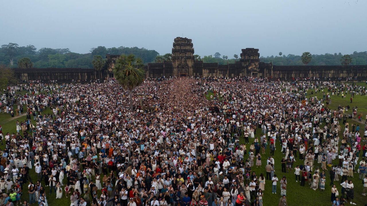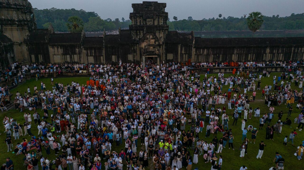 នាព្រលឹមស្រាងៗថ្ងៃទី២២ ខែមីនា ឆ្នាំ២០២៦ ភ្ញៀវទេសចរជាតិ និងអន្តរជាតិជាង ៣ម៉ឺននាក់ បានធ្វើដំណើរមកពីគ្រប់ទិសទី ដើម្បីទស្សនាព្រឹត្តិការណ៍សមរាត្រី (Equinox) ដែលជាទិដ្ឋភាពព្រះសូរិយារះឡើងចំកំពូលប្រាង្គកណ្តាលនៃប្រាសាទអង្គរវត្តយ៉ាងស្រស់ត្រកាលបំផុត។